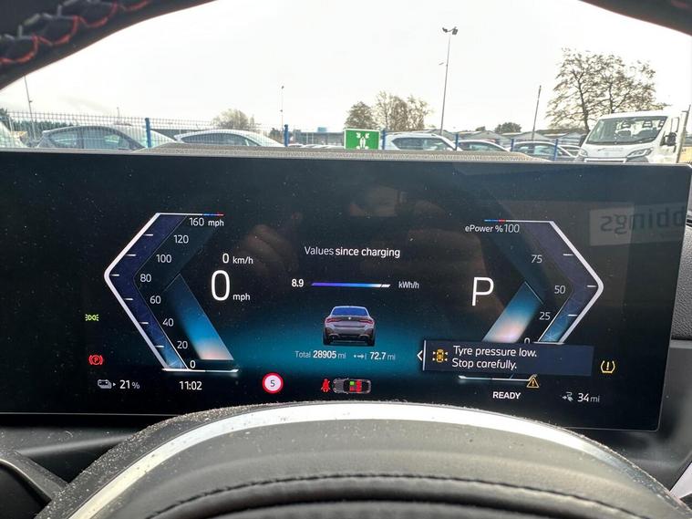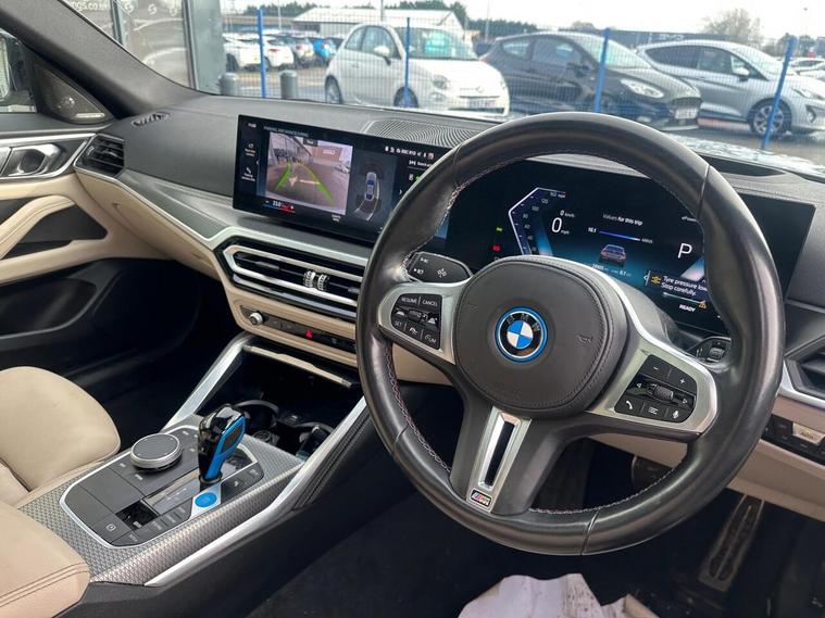 This 2023 BMW i4 M50 is a superb example, having had only one owner since new. As a fully electric vehicle, it offers a sophisticated driving experience with its Four Wheel Drive system. The impressive 84 kWh battery provides a maximum range of 318 miles, ensuring you can travel further on a single charge. Charging at home on a 7kW charger will take approximately 12 hours and 30 minutes, while rapid public charging can take you from empty to 80% in just 34 minutes. Inside, you'll find luxurious Vernasca Leather in Oyster with Grey Stitching, complemented by Electric Memory Seats for personalised comfort. Enjoy your journeys with the Harman Kardon Surround Audio Sound System and the convenience of an Electric Glass Sunroof. Parking is made easier with the integrated Parking Assistant, which includes a rear camera.