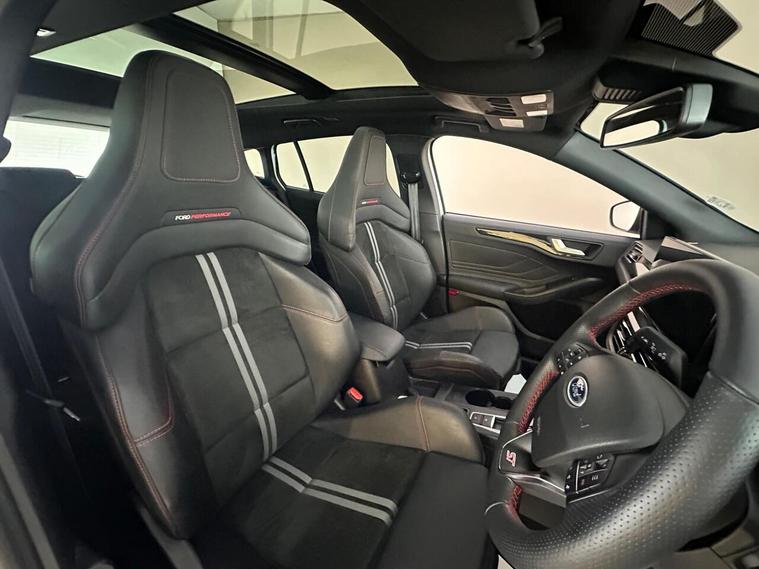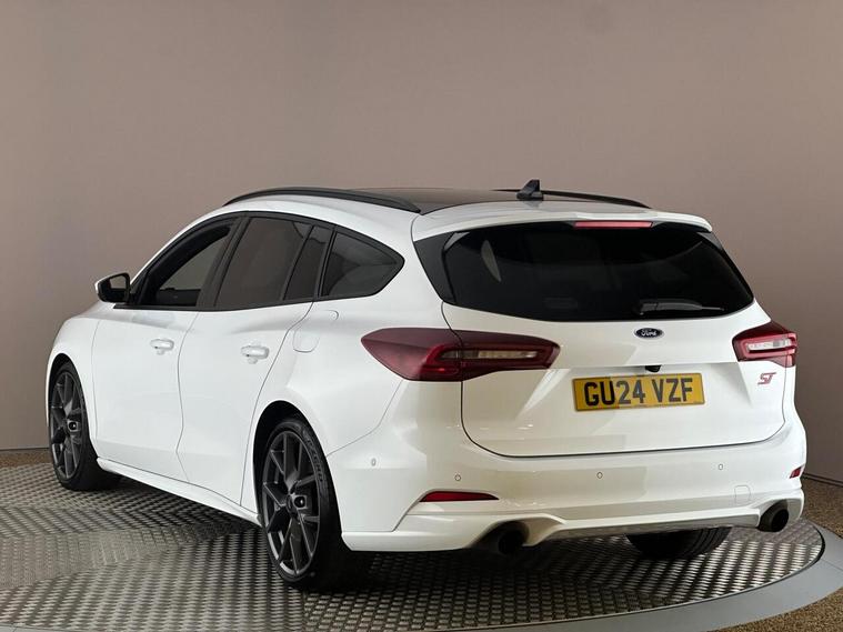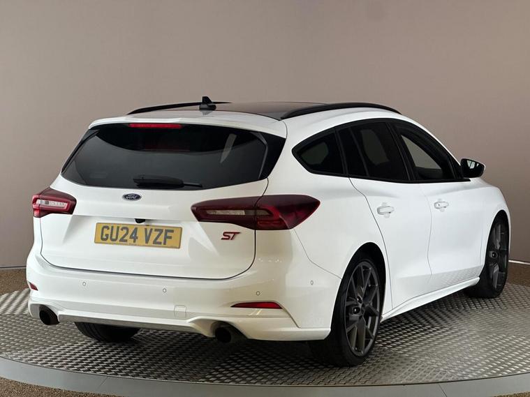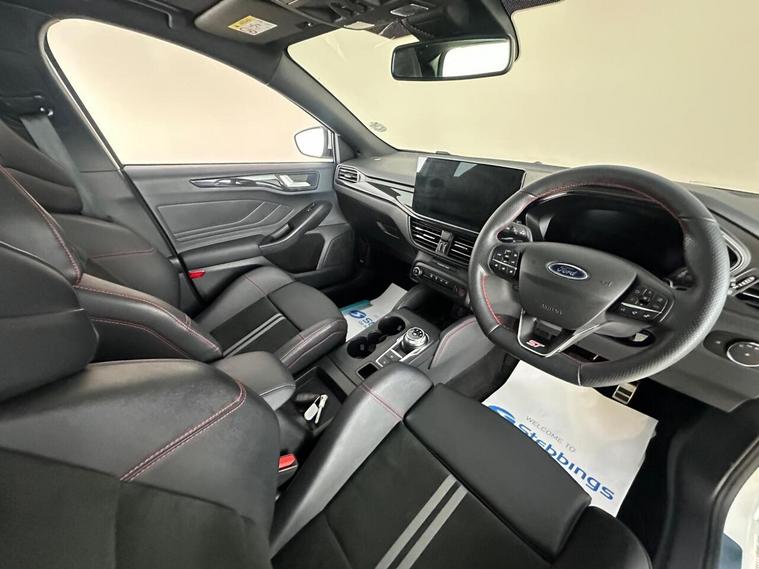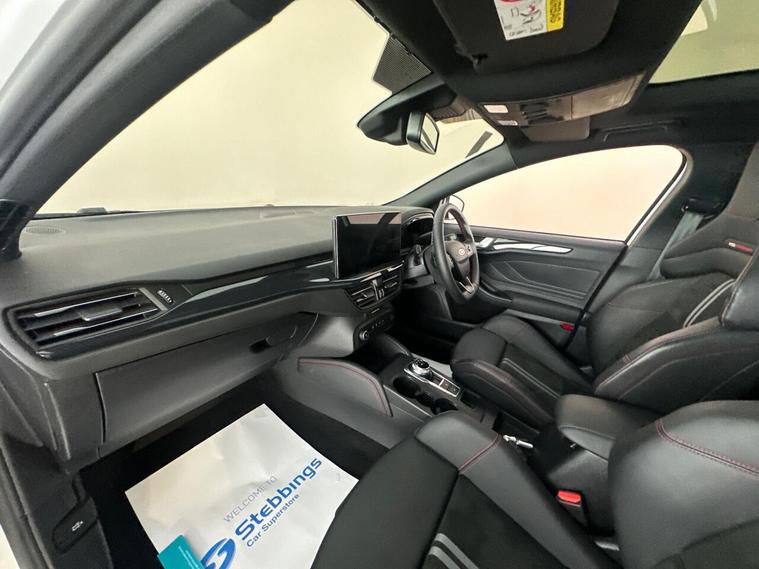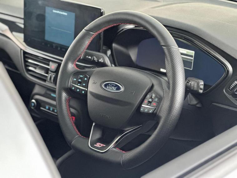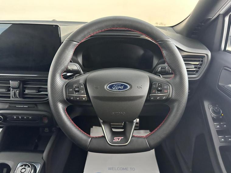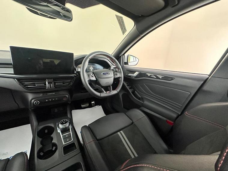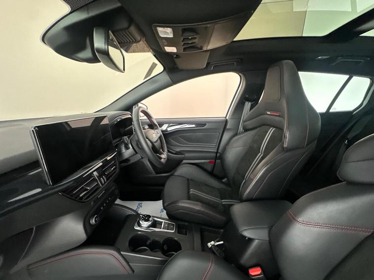 This 2024 Ford Focus ST is a remarkable find, having had only one owner and boasting exceptionally low mileage for its age at just 11, 400 miles. This particular ST model is equipped with a potent 2.3L petrol engine, meeting Euro 6 emission standards, and features a desirable openable panoramic roof for an enhanced driving experience. Convenience is further elevated by the Parking Pack, which includes front and rear parking sensors and a rear camera, alongside DEATC dual-zone electronic automatic temperature control for personalised comfort. Inside, you'll find the advanced Ford SYNC4 navigation system, complete with a 13.2 inch touchscreen that seamlessly integrates Android Auto and Apple CarPlay, all powered by a premium branded sound system.