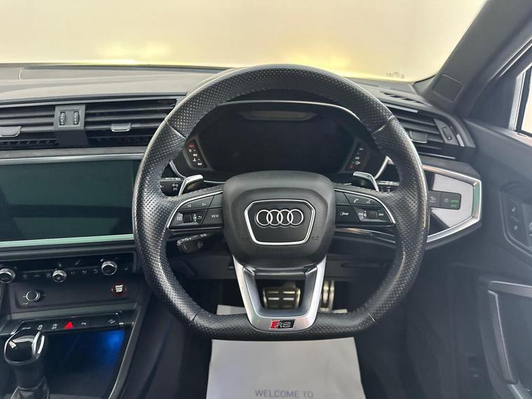 The RS Q3 offers impressive acceleration, reaching 0 to 62 miles per hour in just 4.5 seconds, demonstrating its sporty capabilities. For enhanced convenience, it includes a Comfort and Sound Package, which incorporates parking assistance with a rear camera and a premium branded sound system. Stay connected and entertained with the Audi Smartphone Interface, offering wireless Apple CarPlay and Android Auto. The dual zone electronic climate control ensures comfort for all occupants, while Audi Side Assist provides an extra layer of safety by monitoring blind spots. Furthermore, the generous boot space makes this RS Q3 a highly versatile choice for everyday life and longer journeys.<br/>
