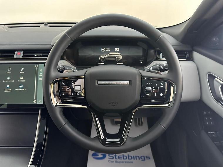 This 2025 Range Rover Velar P400e Dynamic SE presents an exceptional ownership proposition with its remarkably low mileage of just 2500 miles. As a single owner vehicle, it has been meticulously maintained and is presented in the desirable Dynamic SE trim. This sophisticated model features a 2.0 litre petrol plug-in hybrid engine, delivering impressive performance combined with the efficiency of hybrid technology. Its Four Wheel Drive system ensures confident handling in all conditions, while the Euro 6 emission class reflects its modern environmental credentials. Included with this vehicle are both a Home Charging Cable and a Public Charging Cable, alongside convenient Bluetooth connectivity and effective Two Zone Climate Control for a comfortable driving experience. The robust braking system, with 380mm front and 325mm rear discs, provides assured stopping power.