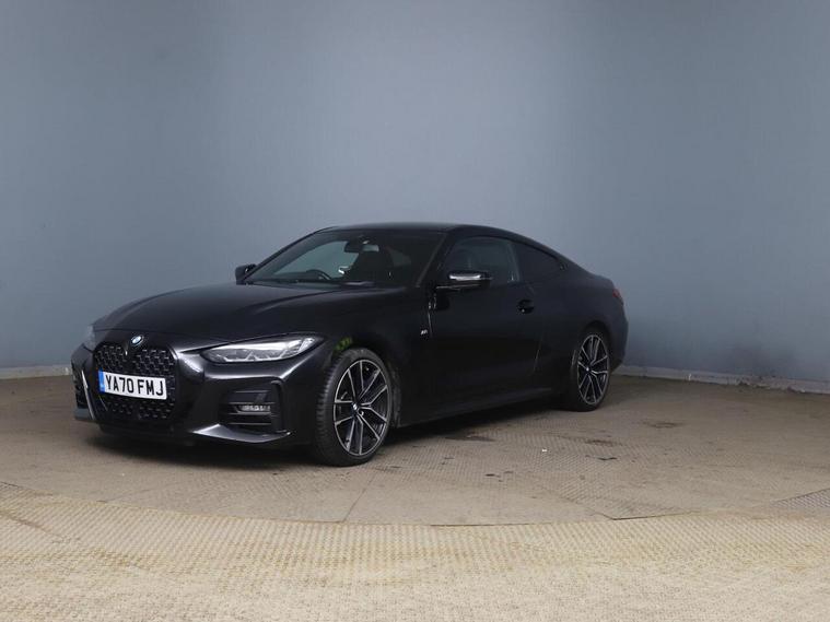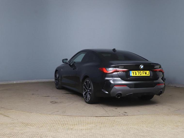 The generous boot space is a practical highlight, making this BMW 4 Series a versatile choice for everyday needs and longer trips. The inclusion of the Technology Package and the Harman Kardon Loudspeaker System signifies a superior level of in car entertainment and driver assistance compared to many other vehicles in its class. The model designation proudly displayed on the left of the tailgate is a subtle nod to its distinguished M Sport heritage.<br/>