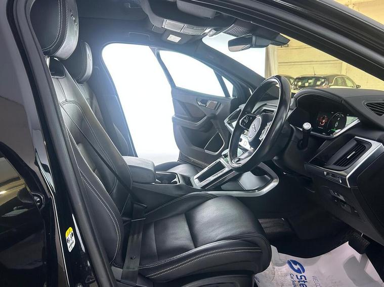 This 2021 Jaguar I-PACE 400 HSE Black is a superb example, having been owned by only one person since new. This all electric, four wheel drive SUV offers a premium driving experience with its HSE Black trim. It boasts a substantial 90 kWh battery, providing an impressive maximum range of 279 miles when new. Charging is convenient, with a full charge taking approximately 12 hours and 36 minutes on a 7kW home charger, while rapid public charging can achieve 80% capacity in just 50 minutes. Notable features include Apple CarPlay for seamless smartphone integration, 40 20 40 folding heated rear seats with a centre armrest for comfort and versatility, and a fixed panoramic roof that floods the cabin with natural light. The adaptive cruise control with steering assist enhances long journeys, and the striking Matrix LED headlights with signature daytime running lights ensure excellent visibility.