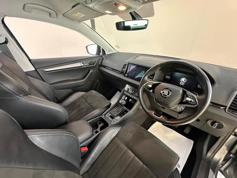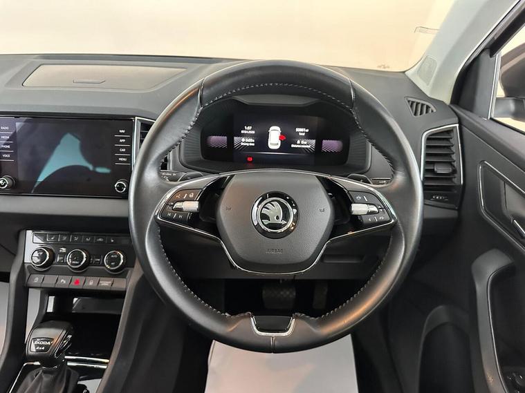 This 2023 Skoda Karoq TDI SE L is a superb example, having had only one owner since new. This stylish SUV features a robust 2.0 litre diesel engine paired with four wheel drive, ensuring confident handling in various conditions. It meets Euro 6 emission standards, contributing to lower environmental impact. Inside, you'll find the convenience of SmartLink, offering seamless integration with Android Auto and Apple CarPlay, alongside a Winter Pack that includes heated seats for added comfort. The SE L trim also benefits from a rear view camera and a comprehensive Parking Package, complete with front and rear sensors, making manoeuvring effortless. Keyless entry and a start stop system further enhance the user experience.