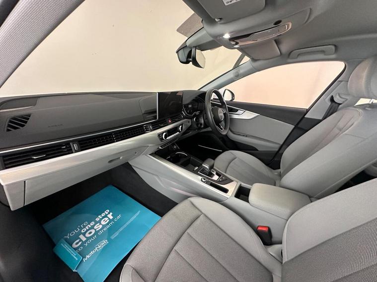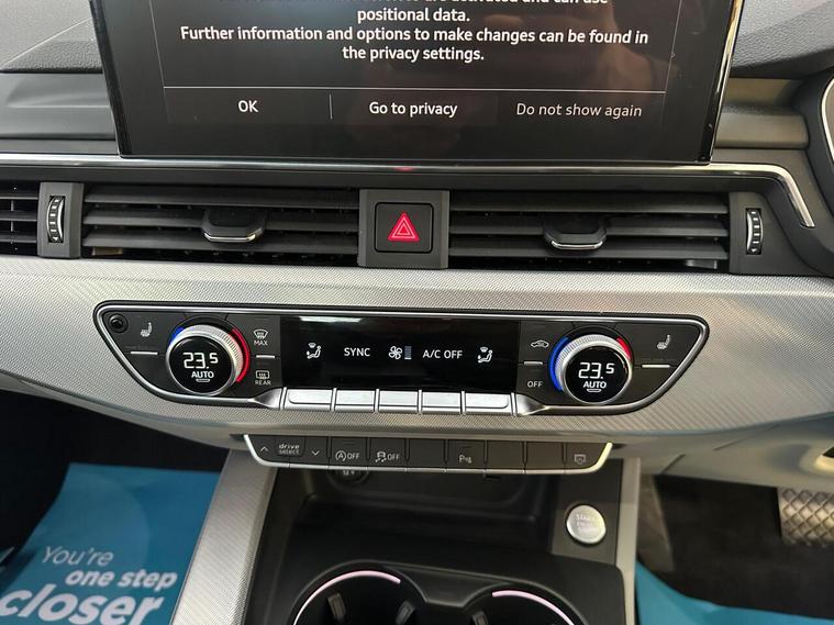 This 2023 Audi A4 Avant TFSI Technik is a superb example, having had only one owner from new. This estate car boasts a 2.0 litre petrol engine and meets Euro 6 emissions standards. It comes equipped with the desirable Comfort and Sound Package, which includes keyless entry, a luxury branded sound system, and a 360 degree camera for effortless parking. You'll also find a Bluetooth interface for seamless phone connectivity, a rear view camera, and deluxe 3 zone electronic climate control to ensure everyone's comfort. Furthermore, the Parking System Plus provides front and rear sensors, complementing the comprehensive parking assistance features.