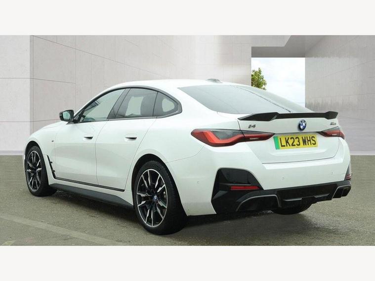 This 2023 BMW i4 M50 presents an exceptional ownership proposition, having had only one owner from new and boasting a remarkably low mileage of just 20, 533 miles. As a fully electric, four wheel drive vehicle, it offers a sophisticated driving experience powered by an 84 kWh battery, providing a maximum range of 318 miles when new. Charging is convenient, with a full charge at home taking approximately 12 hours and 30 minutes using a 7kW charger, while rapid public charging can replenish the battery from empty to 80% in as little as 34 minutes. Inside, you'll find luxurious Vernasca leather upholstery in Oyster with Grey stitching, a driver's seat with front lumbar support, and a premium Harman Kardon Surround Audio Sound System for an immersive listening experience. The M50 variant also includes an Electric Glass Sunroof and the advanced Parking Assistant Plus, which features a 360 degree camera and front and rear parking sensors, making manoeuvring effortless.