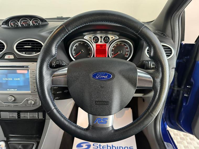 This 2009 Ford Focus RS is a rare find, having had only two owners from new. Finished in the striking Performance Blue, this iconic hot hatch boasts a powerful 2.5 litre petrol engine and features RS Dynamica partial leather trim, offering a blend of sporty style and comfort.