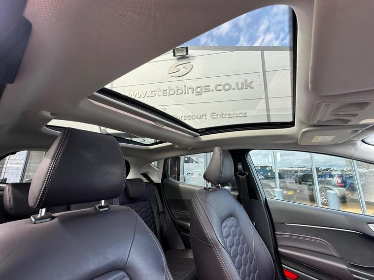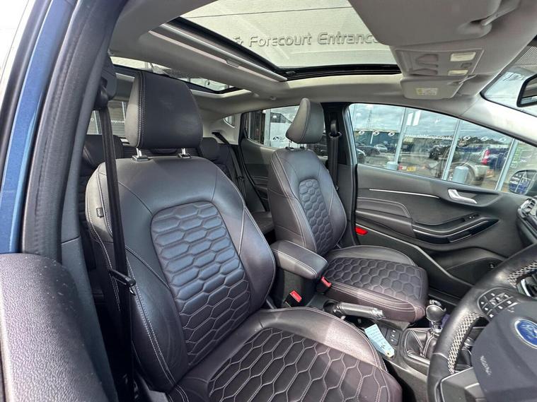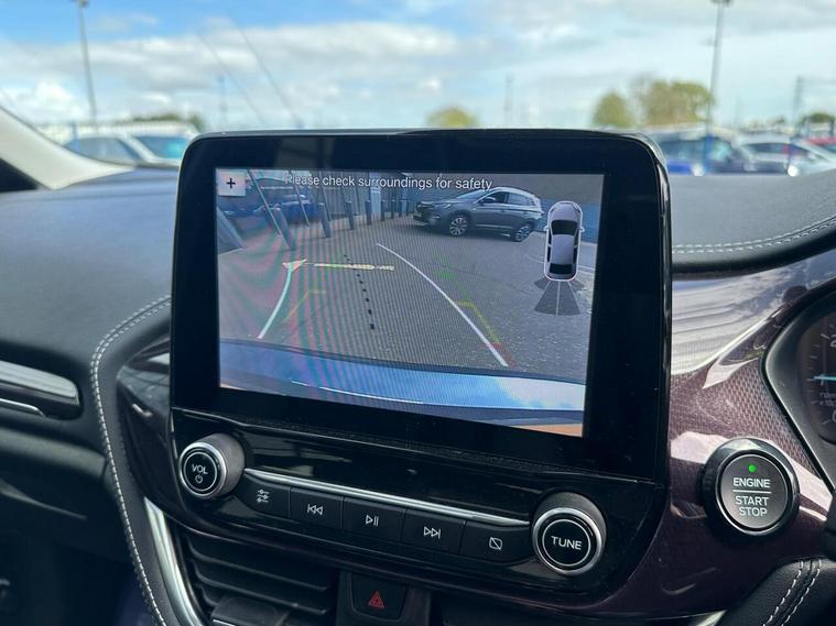 This 2019 Ford Fiesta T Vignale offers a premium driving experience with its sophisticated Vignale trim. Powered by an efficient 1.0L Euro 6 petrol engine, this model boasts impressive acceleration, reaching 0-62mph in just 9.0 seconds. Inside, you'll find a wealth of desirable features designed for comfort and convenience, including automatic headlights, a heated steering wheel, and heated front seats for those colder journeys. The opening panorama roof floods the cabin with light, creating an airy and pleasant atmosphere, while the B and O PLAY premium sound system, integrated with Ford SYNC 3 Navigation and FordPass Connect, ensures your entertainment and connectivity needs are met with Android Auto, Apple CarPlay, and Bluetooth.