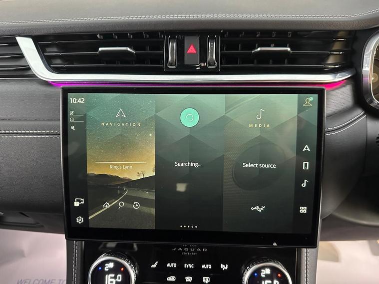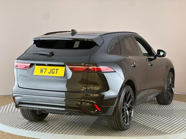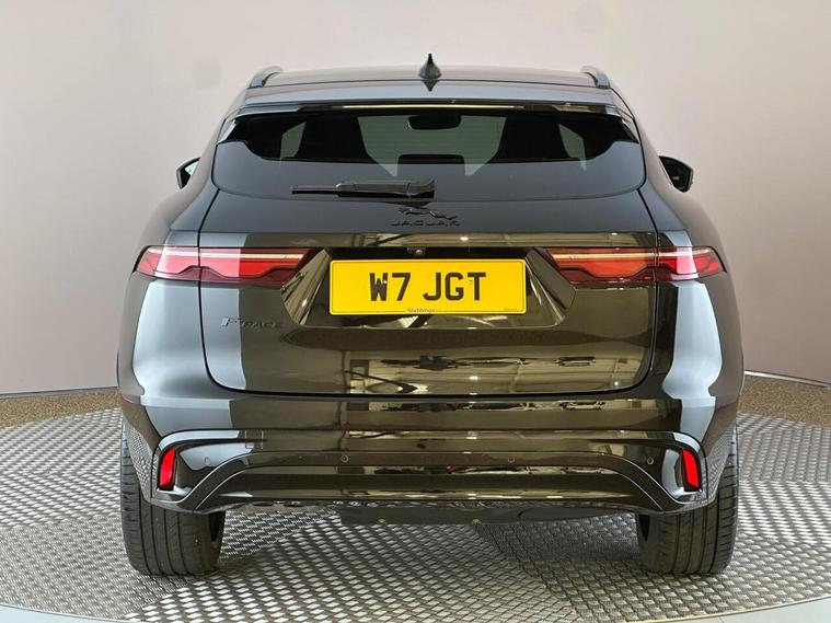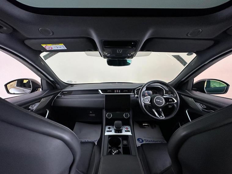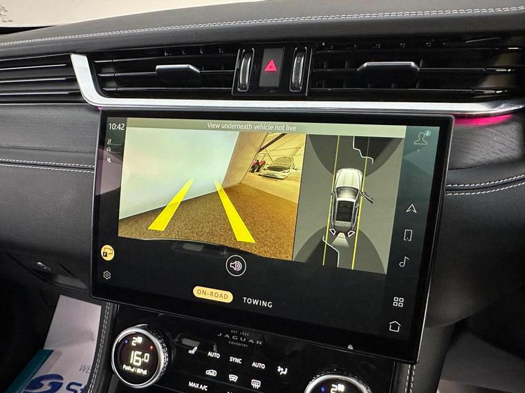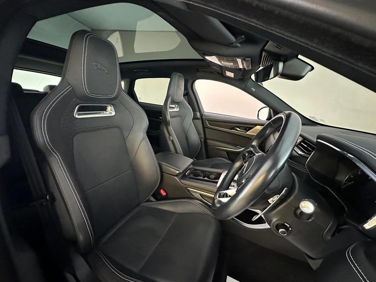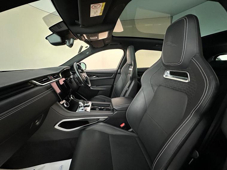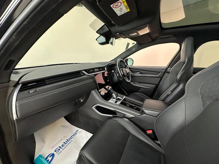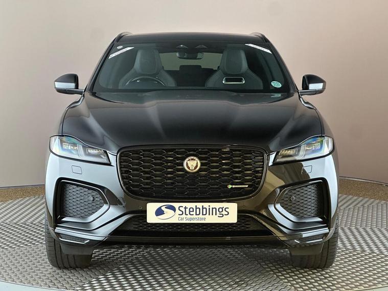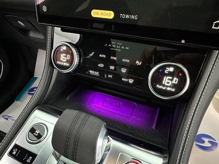 This 2022 Jaguar F-PACE D200 R-Dynamic HSE boasts exceptionally low mileage for its age, having covered just 27, 584 miles. This impressive four wheel drive SUV is equipped with a 2.0 litre diesel engine and meets Euro 6 emissions standards. The R-Dynamic HSE trim level ensures a premium experience, enhanced by features such as a sliding panoramic roof with an opening sunroof, wireless device charging with a phone signal booster, and a luxurious Meridian surround sound system. It also features striking 22 inch alloy wheels in a gloss black finish with satin black inserts, and a 3D surround camera system for comprehensive parking assistance.