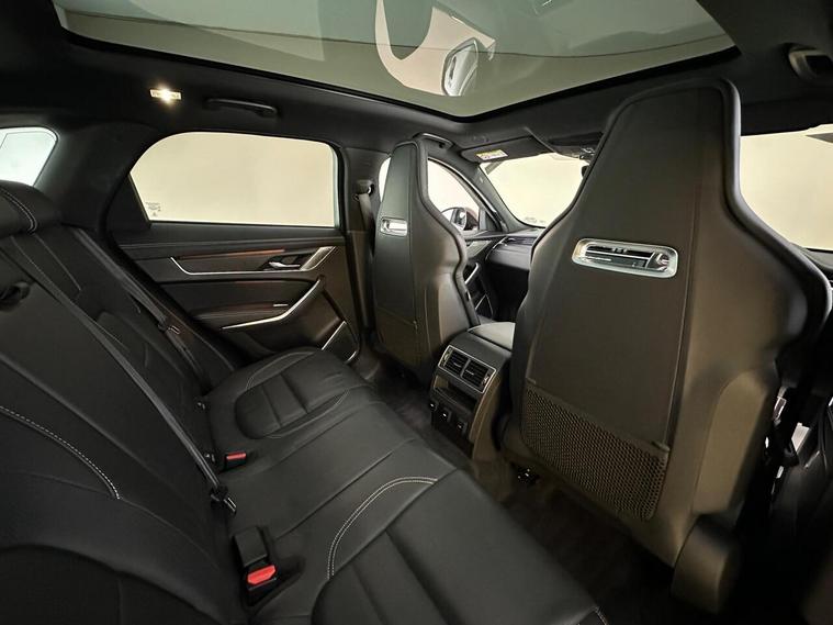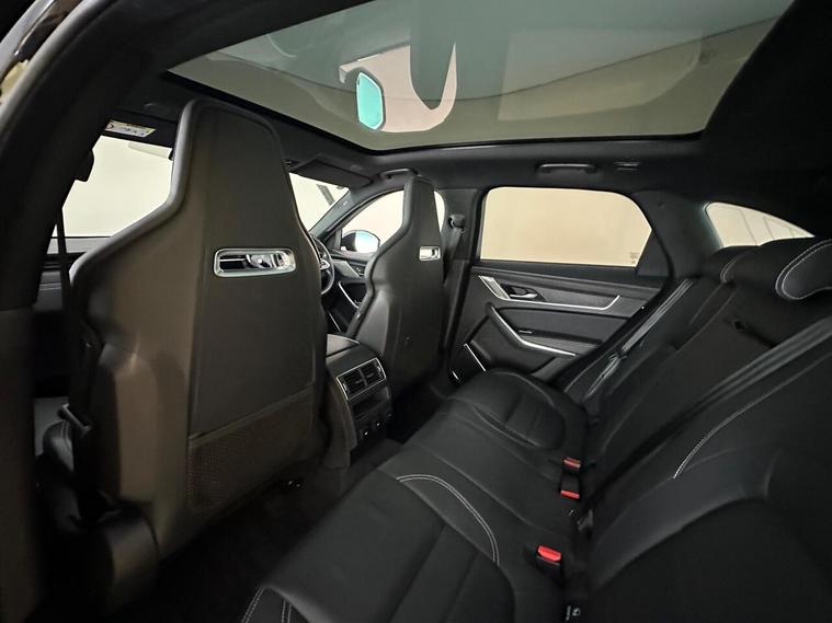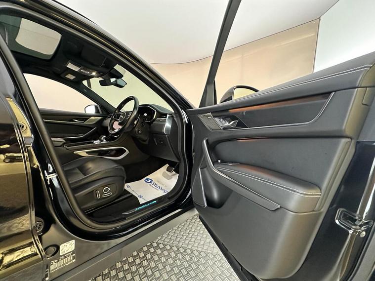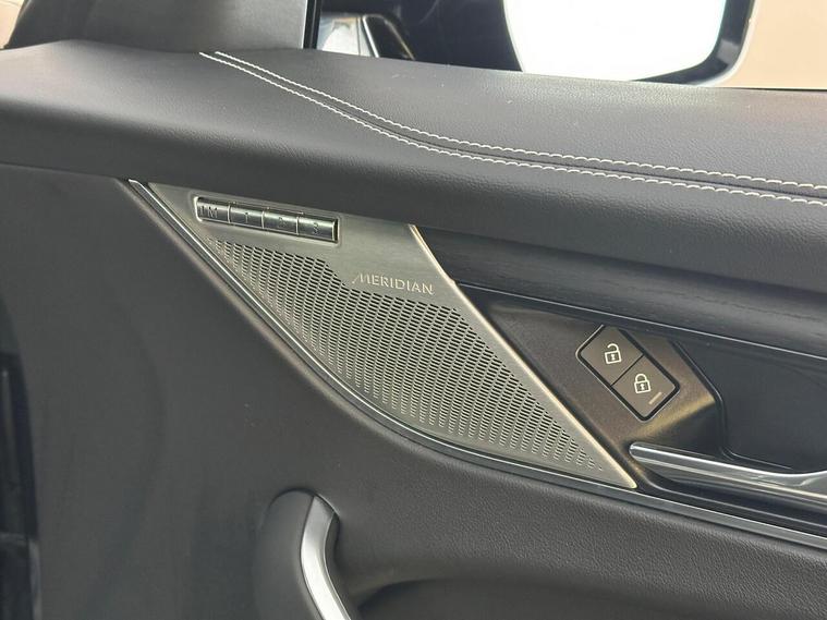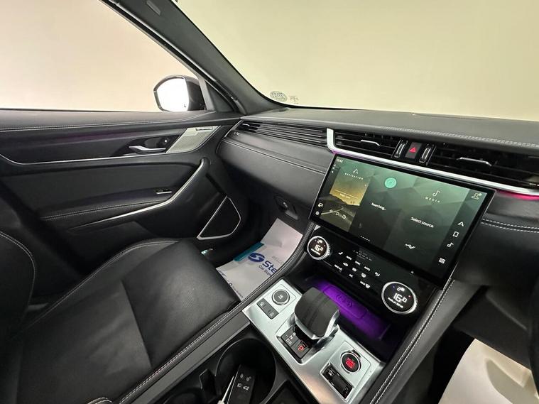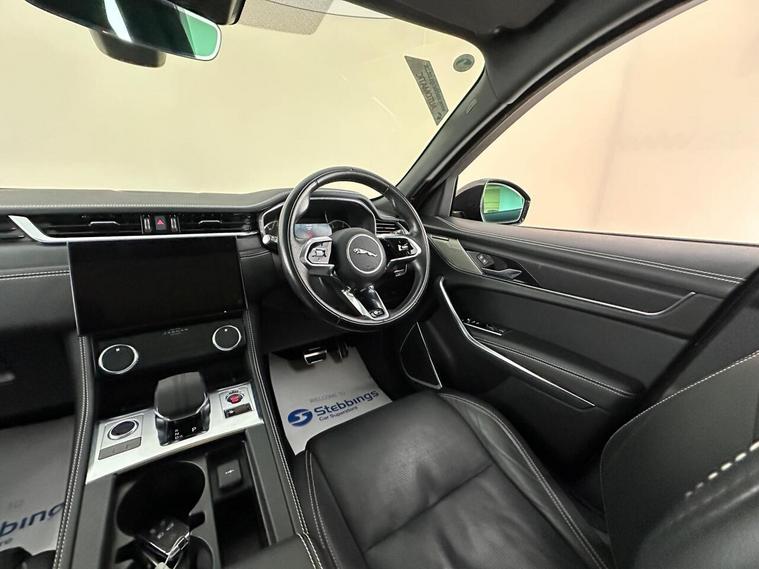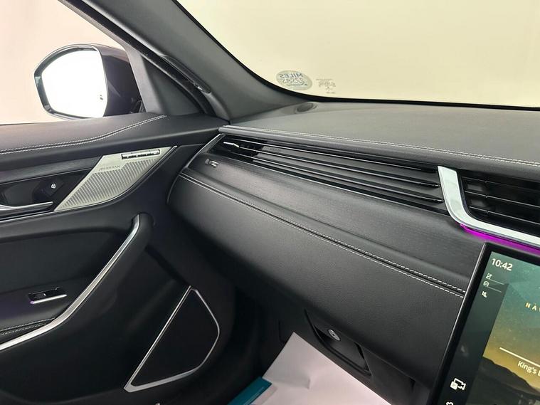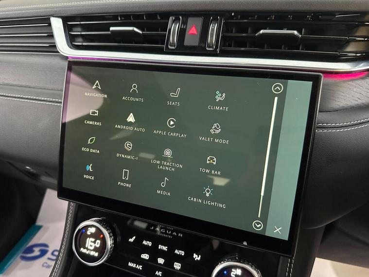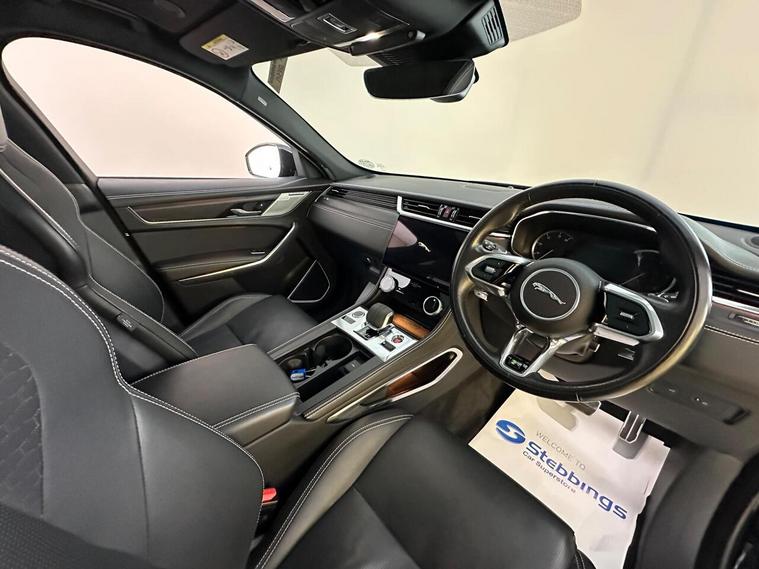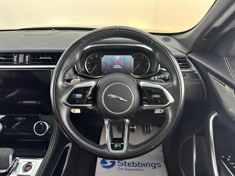 This 2022 Jaguar F-PACE D200 R-Dynamic HSE boasts exceptionally low mileage for its age, having covered just 27, 584 miles. This impressive four wheel drive SUV is equipped with a 2.0 litre diesel engine and meets Euro 6 emissions standards. The R-Dynamic HSE trim level ensures a premium experience, enhanced by features such as a sliding panoramic roof with an opening sunroof, wireless device charging with a phone signal booster, and a luxurious Meridian surround sound system. It also features striking 22 inch alloy wheels in a gloss black finish with satin black inserts, and a 3D surround camera system for comprehensive parking assistance.