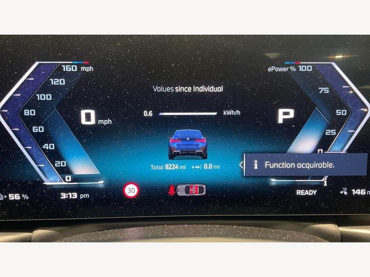 This 2025 BMW i4 M60 is a superb example, having had only one owner since new. This all electric, four wheel drive saloon offers a compelling blend of performance and practicality. With a substantial 84 kWh battery, it boasts a maximum range of 336 miles, ensuring you can travel further on a single charge. Charging is convenient, taking approximately 12 hours and 45 minutes at home using a 7kW charger, or a rapid 34 minutes from empty to 80% at a public charging station. Notable features include electric windows, folding wing mirrors with auto dimming, a professional Mode 3 fast charging cable for public use, a handy storage compartment package, and tyre pressure sensors for added peace of mind.