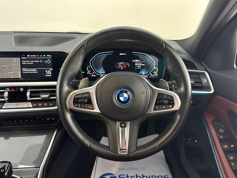 You will appreciate the convenience of heated front seats and a heated steering wheel, perfect for colder journeys. Parking is made easier with front and rear Park Distance Control, and the rain sensor automatically activates the headlights, which are also adaptive LEDs for optimal visibility. These features demonstrate the thoughtful specification of this particular 330e, setting it apart and providing a more refined driving experience.<br/>