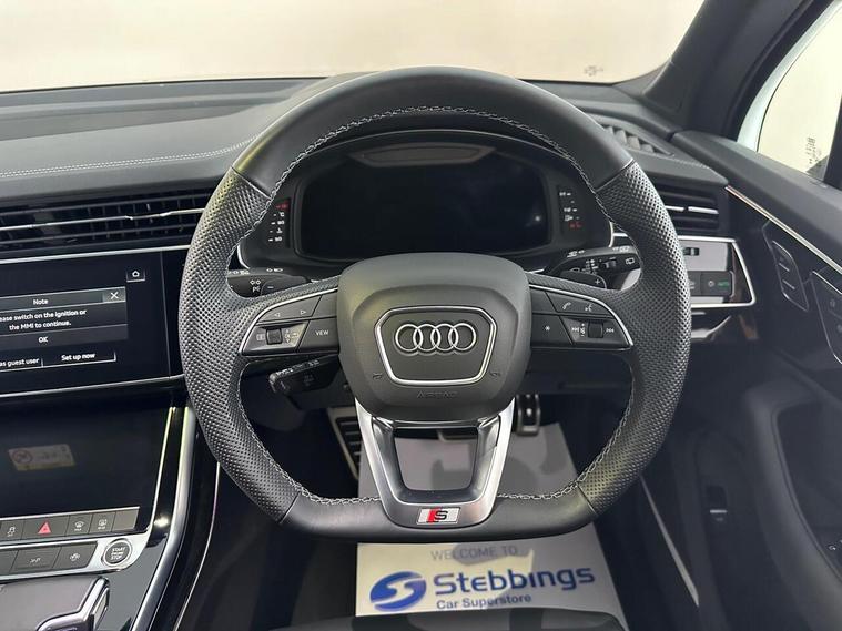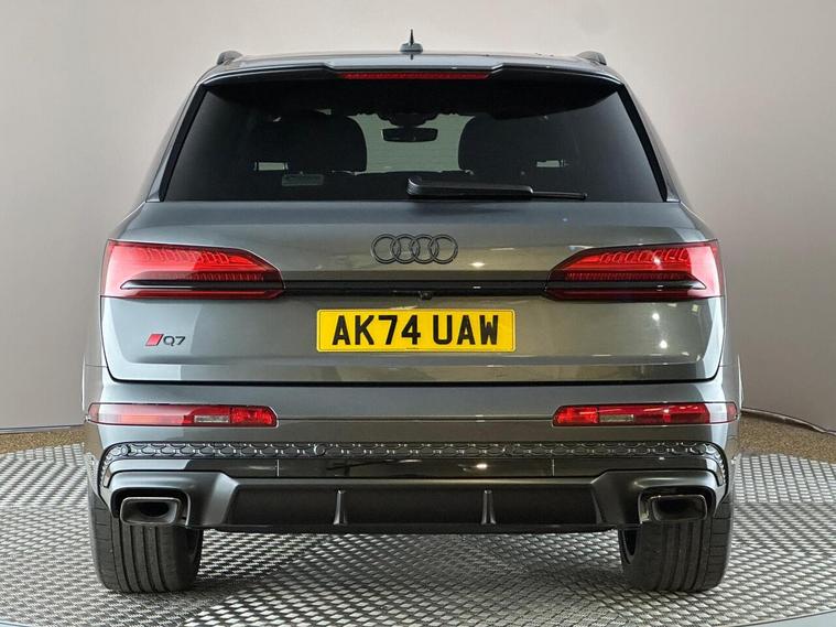 This 2024 Audi Q7 TDI V6 Black Edition presents an exceptional opportunity with its remarkably low mileage of just 6399 miles, a testament to its single owner provenance. This sophisticated seven seat SUV boasts a powerful 3.0 litre diesel engine, delivering impressive performance with a 0-62mph acceleration time of only 6.1 seconds, all while adhering to Euro 6 emission standards. Its Four Wheel Drive system ensures confident handling in various conditions, and the generous boot space offers practicality for any journey. Inside, you'll find the convenience of the Audi Smartphone Interface with Android Auto and Apple CarPlay, alongside the Audi Phone Box Light for wireless phone charging. Comfort is assured with 2 Zone Automatic Climate Control and electrically adjustable front seats, including a memory function for the driver's seat. Parking is made easier with the integrated rear view camera.