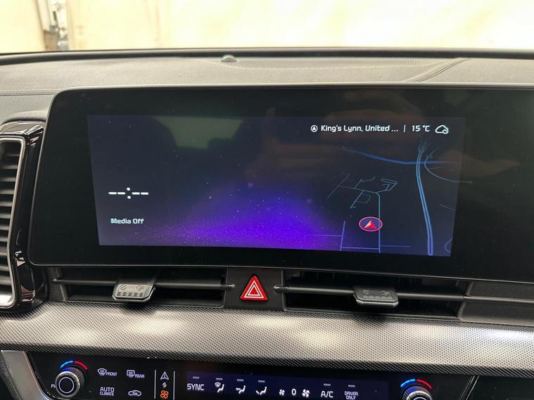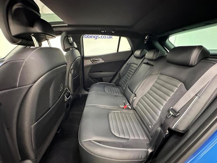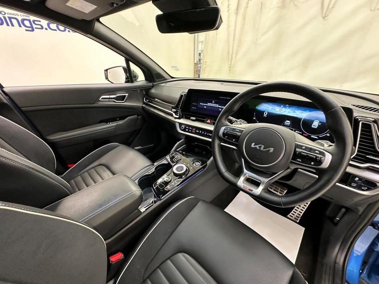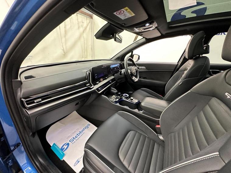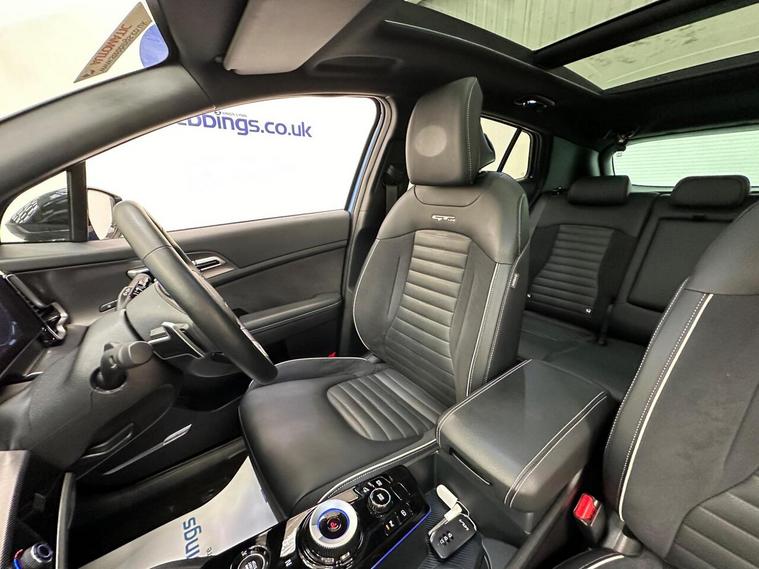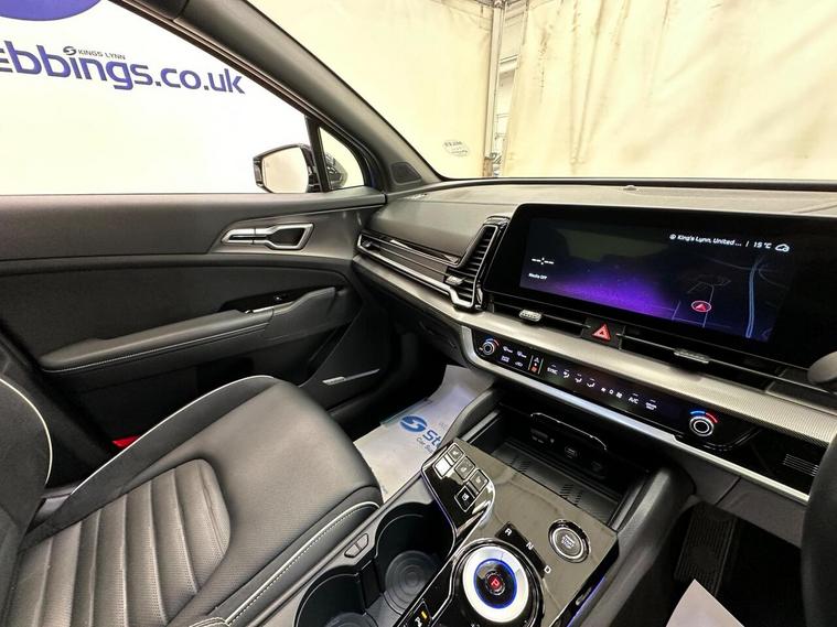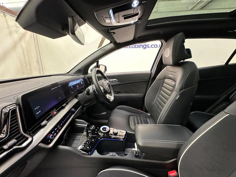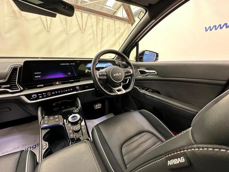 This is a Kia Sportage h T-GDi GT-Line S, registered in 2023. As a car with a 1.6L petrol hybrid engine and a Euro 6 emission class, this Sportage comes in a GT-Line S trim and has only had one owner. It boasts heated front seats for added comfort, as well as a Harman Kardon premium sound system, and automatic headlight control. The inclusion of rear parking sensors makes parking easier, and a wireless phone charger adds to the convenience.