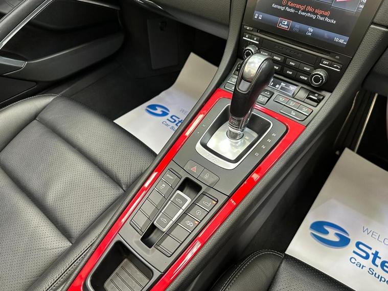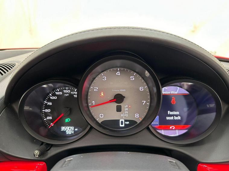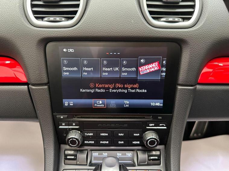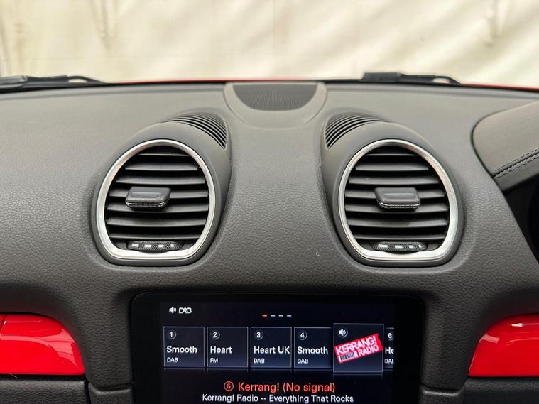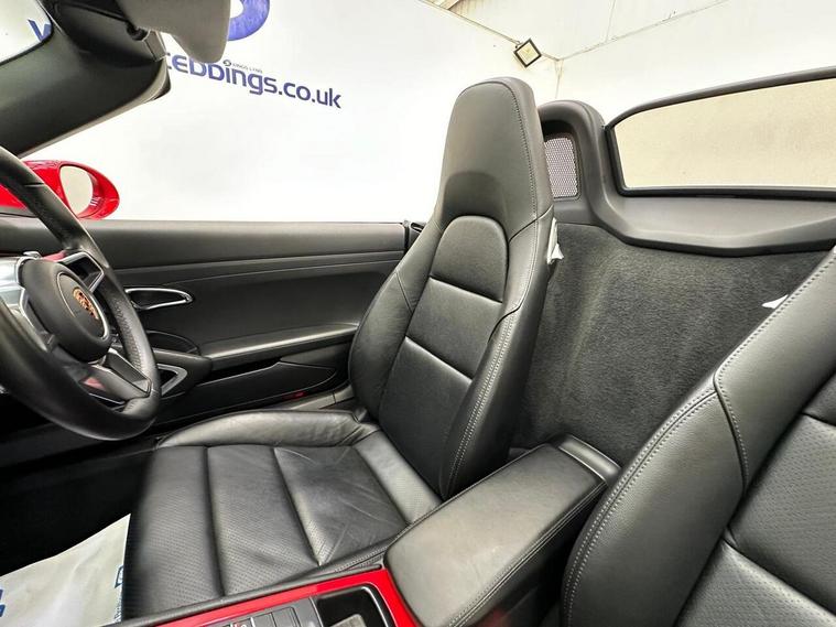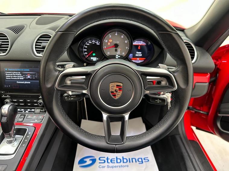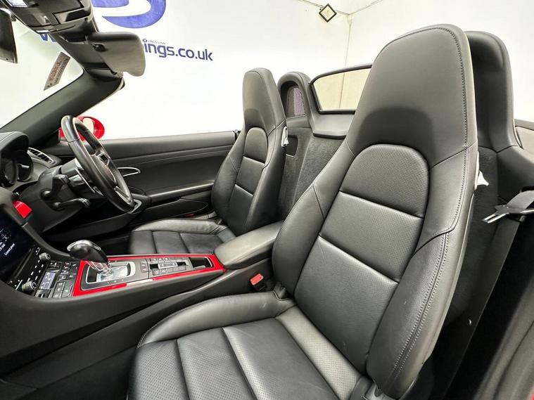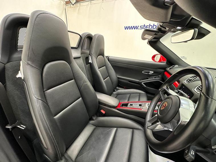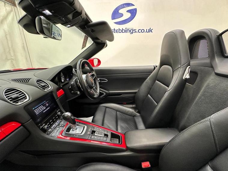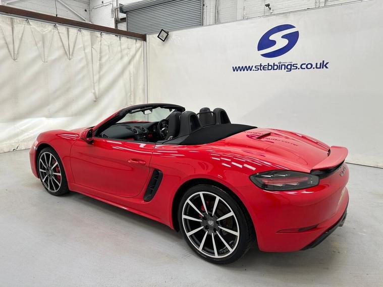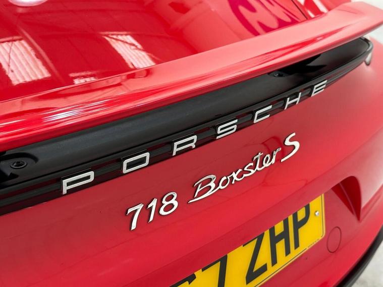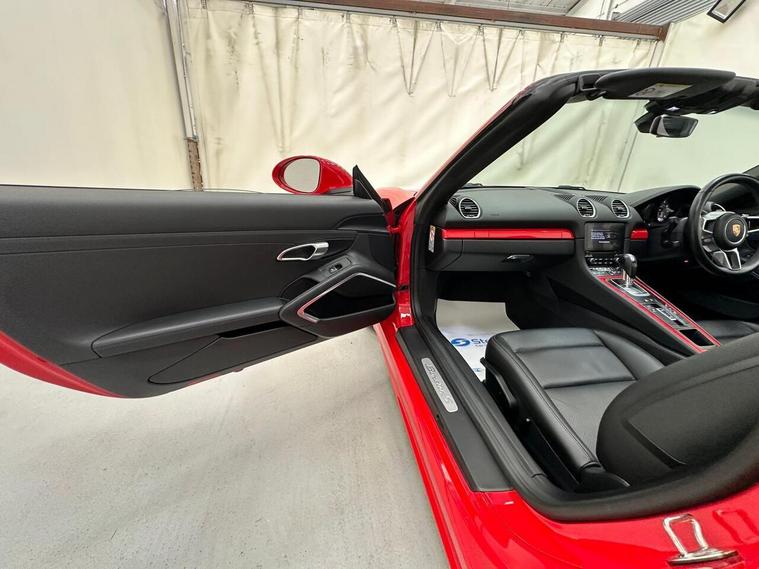 Experience the thrill of open-top motoring with this 2017 Porsche 718 Boxster S. This sleek convertible combines iconic Porsche design with a potent 2.5L petrol engine, delivering an exhilarating driving experience while meeting stringent Euro 6 emission standards. The interior is beautifully appointed with partial leather in black, complemented by the painted interior package. Enjoy enhanced comfort with heated seats, perfect for top-down drives on cooler days. The car rides on eye-catching 20in Carrera Classic alloy wheels, and the road ahead is brightly lit with Bi-Xenon headlights featuring integrated LED daytime running lights.