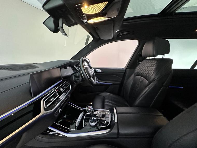 This 2021 BMW X7 40d M Sport is a superb example, having been owned by only one person since new. This impressive seven seater SUV boasts a powerful 3.0L Diesel Hybrid engine, paired with Four Wheel Drive for confident handling in all conditions. Finished in the desirable M Sport trim and benefiting from the M Sport Pro Package, it also features a luxurious BMW Individual Interior Trim Finisher in Piano Black and a stunning Panorama Glass Roof Sky Lounge with an opening sunroof. For convenience, it includes the BMW Live Cockpit Professional with Bluetooth connectivity and the Comfort Access System for keyless entry.