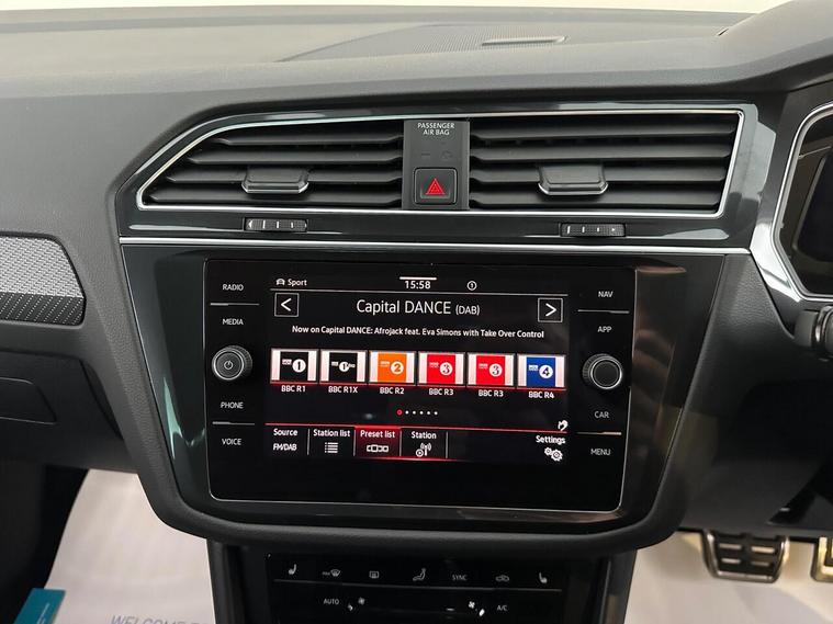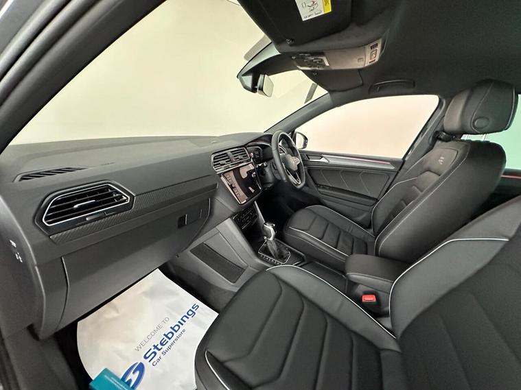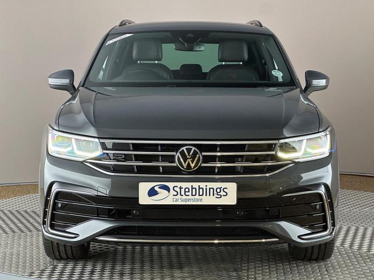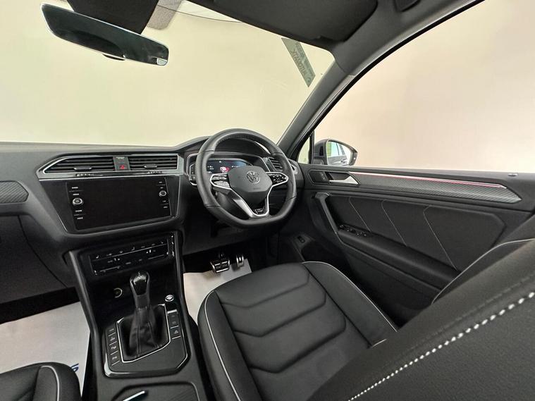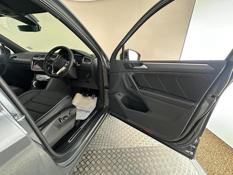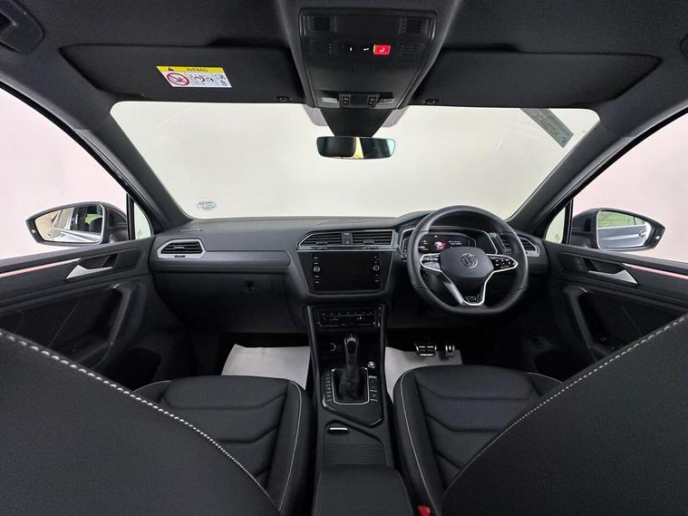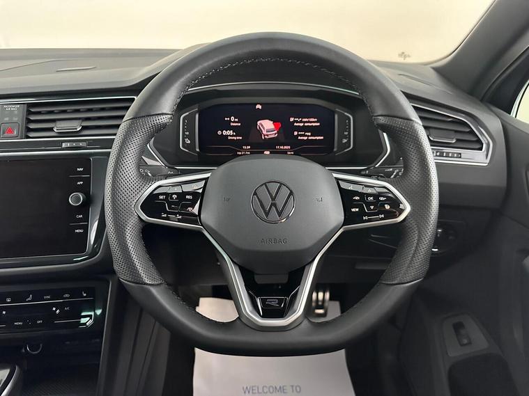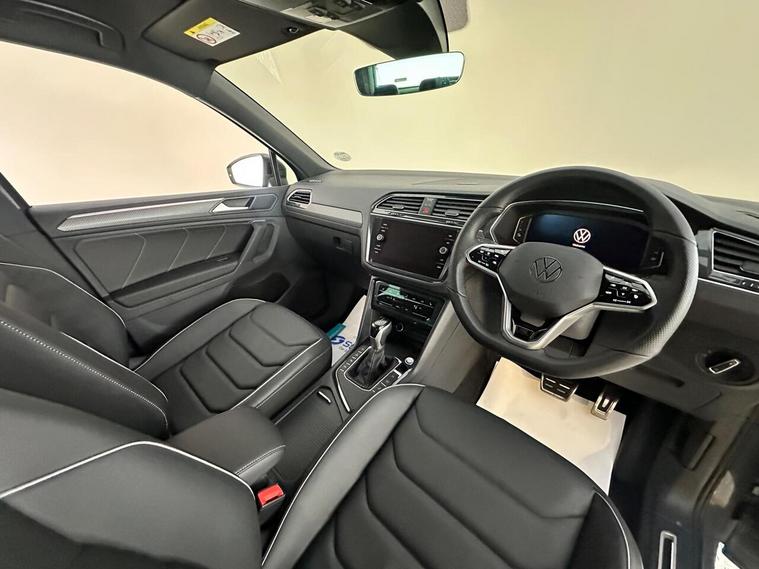 This 2023 Volkswagen Tiguan TSI R-Line presents an exceptional opportunity with an incredibly low mileage of just 53 miles, making it virtually as new. As a single owner vehicle, it boasts a Euro 6 emission class and features the sophisticated R Line trim. Inside, you'll find luxurious Vienna Leather in Black Crystal Grey, complemented by a heated leather trimmed three spoke multifunction steering wheel and gear knob, part of the convenient Winter Pack which also includes heated seats. The Dynamic Chassis Control (DCC) offers an adaptable driving experience, while front and rear parking sensors with parking assistance ensure effortless manoeuvring.