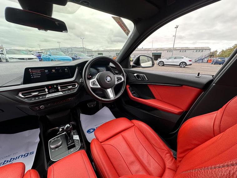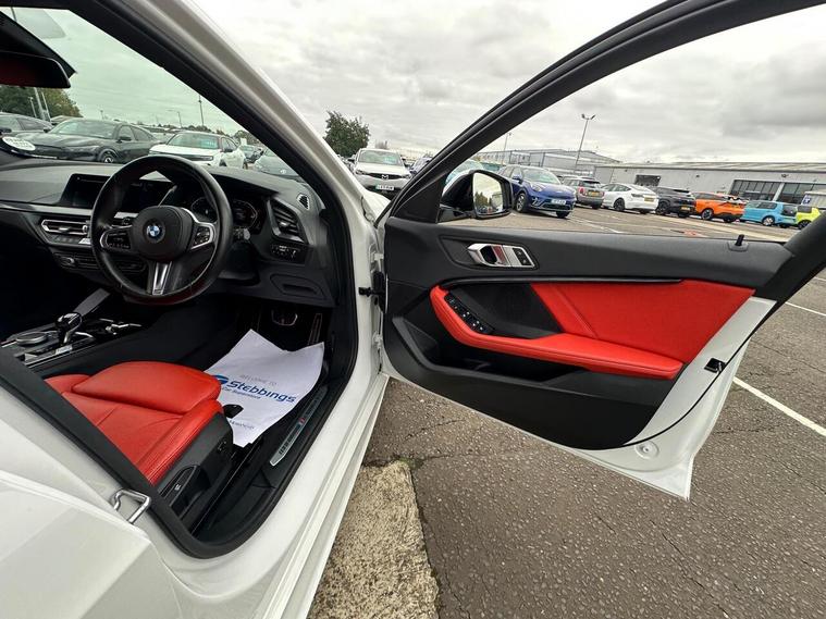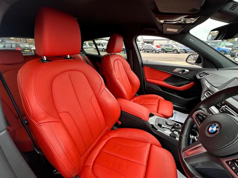 This 2021 BMW 1 Series 116d M Sport (LCP) is a remarkable find, boasting exceptionally low mileage for its age, having covered just 25, 271 miles. This desirable vehicle has had only one owner since new and is presented in the sporty M Sport trim. Under the bonnet, it features a 1.5L Diesel Engine, compliant with Euro 6 emissions standards. Notable features include the M Sport Pro Package, enhancing its dynamic appeal, and luxurious Perforated Dakota Leather upholstery in Magma Red with Grey Highlight. For added convenience and safety, it is equipped with an Incorrect Fuelling Protection System, a Rain Sensor with Automatic Headlight Activation, and LED Headlights.