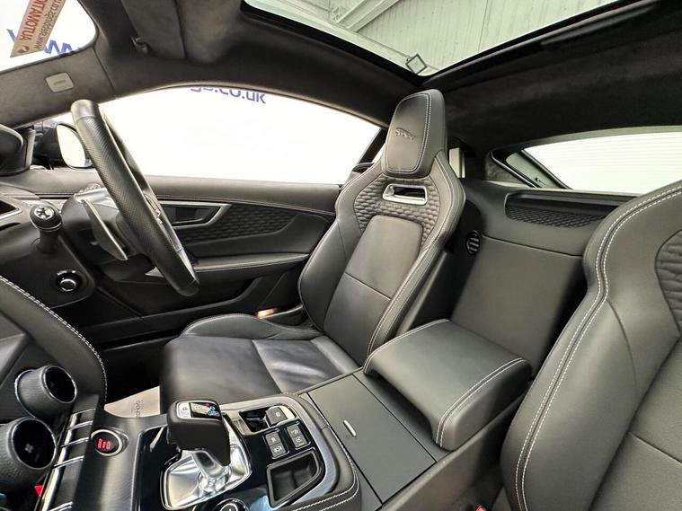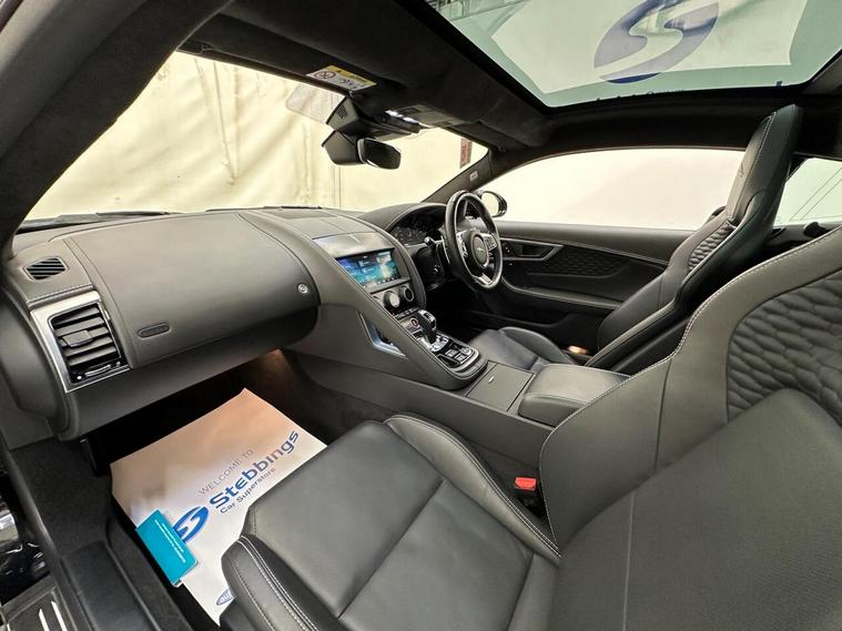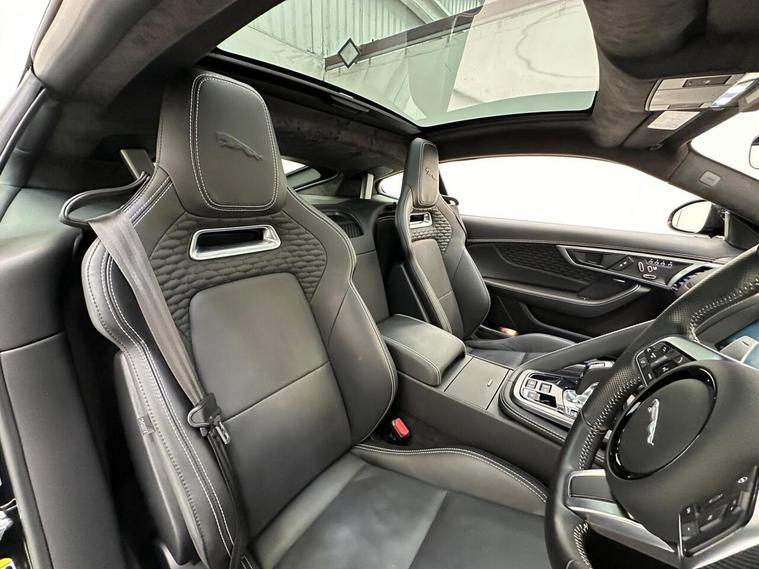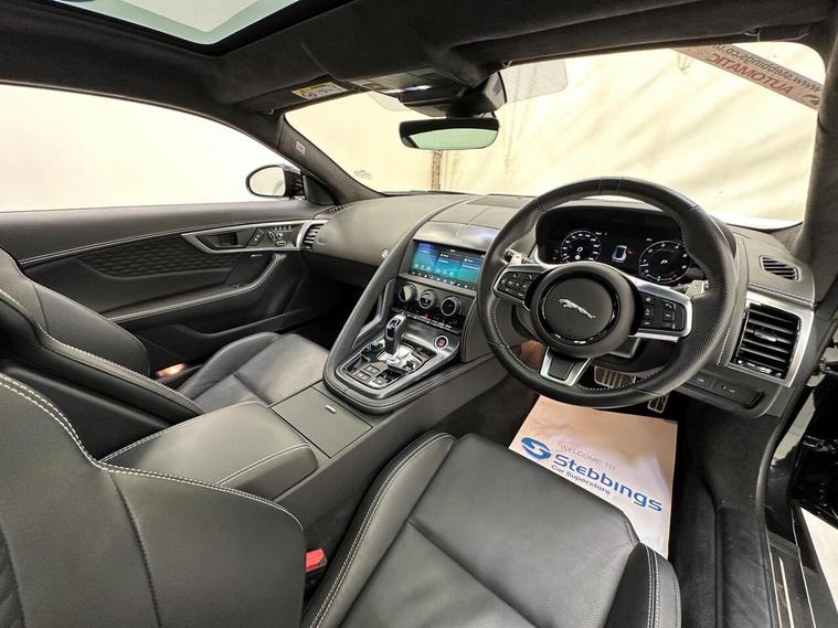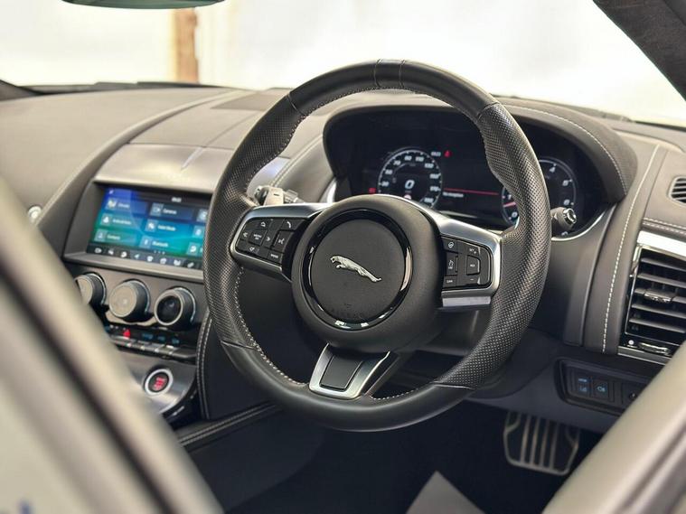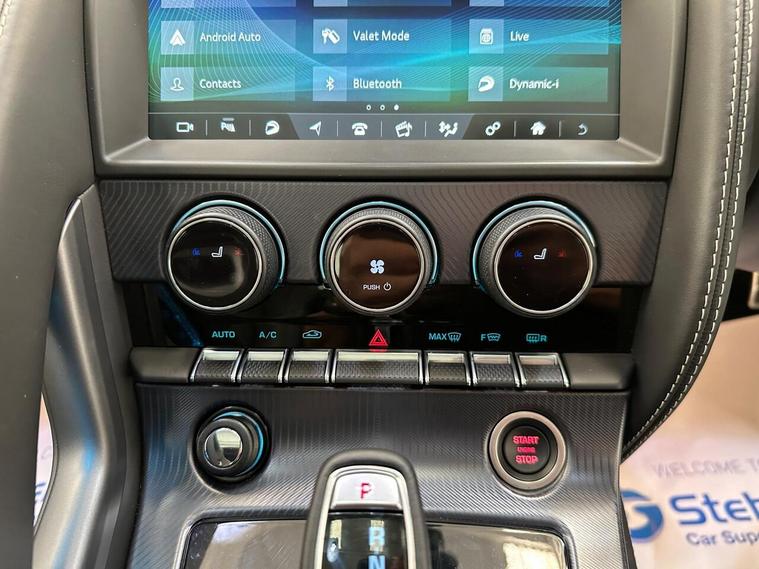 Experience the thrill of the 2022 Jaguar F-Type V8 R-Dynamic Black, a sleek coupe that combines performance with sophisticated technology. The R-Dynamic Black trim enhances the car's sporty appeal, making it a joy to drive and admire. Equipped with a powerful 5.0L petrol engine and a four-wheel-drive system, this Euro 6 compliant vehicle delivers a dynamic driving experience. Convenience is at your fingertips with keyless entry, allowing you to effortlessly access the vehicle. Stay connected on the go with Apple CarPlay and Bluetooth connectivity, ensuring seamless integration of your smartphone. Manoeuvring is made easy with front and rear parking aids, providing assistance when you need it most.