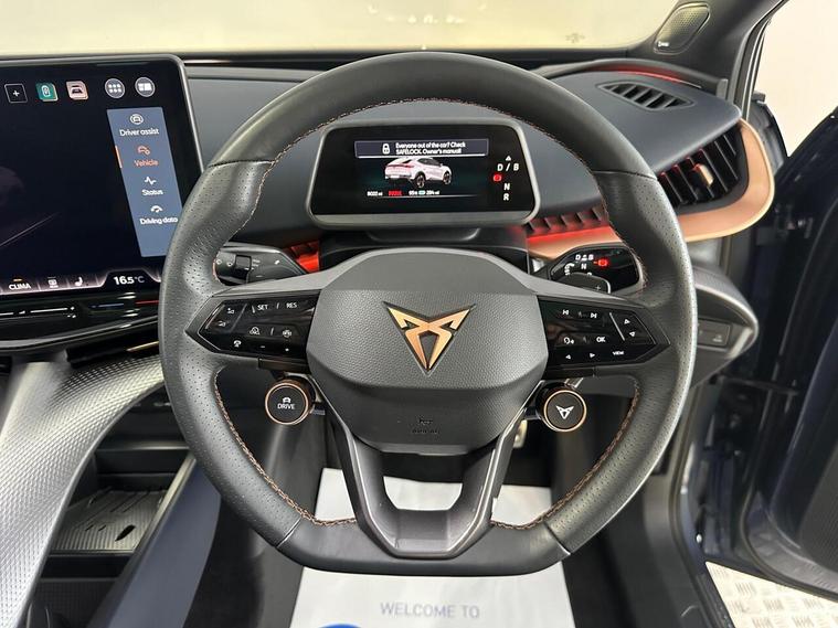This 2025 CUPRA Tavascan V2 is a superb example, having had only one owner from new. This electric vehicle boasts an impressive battery total capacity of 82 kWh, offering a maximum range of 339 miles. For your convenience, it features Side Assist with Blind Spot Assistance, an Augmented Reality Head-Up Display, and a heated, leather wrapped multifunction steering wheel with satellite buttons. Comfort is further enhanced by the Three Zone Climatronic Air Conditioning and Predictive Adaptive Cruise Control.