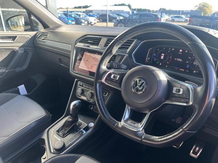 This 2020 Volkswagen Tiguan Allspace BiTDI R-Line Tech is a remarkable example, having had only one owner since new. This seven seat, four wheel drive SUV is powered by a 2.0 litre Euro 6 diesel engine, offering a robust towing weight of 2500 kg. It boasts a suite of advanced features, including trapezoid exhaust tailpipes, a tyre mobility kit, and Dynamic Chassis Control for an adaptable driving experience. The R-Line Tech trim also includes Area View with Park Assist, providing a 360 degree camera for effortless parking, and LED headlights with Dynamic Light Assist for optimal visibility.