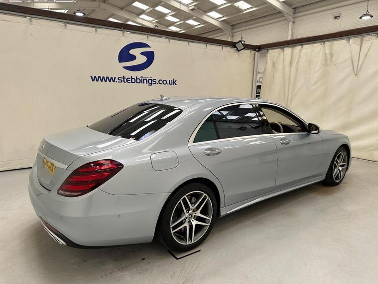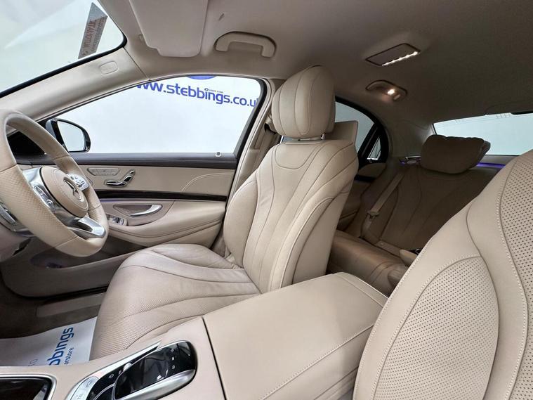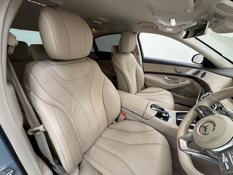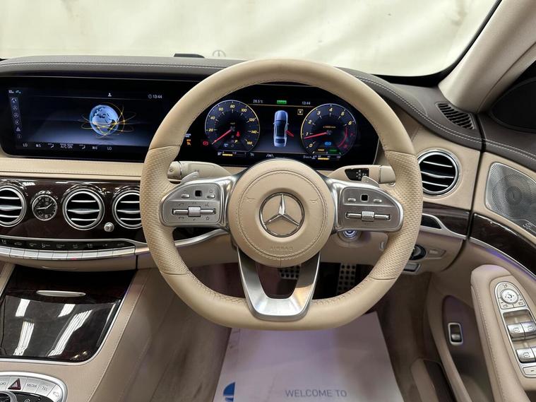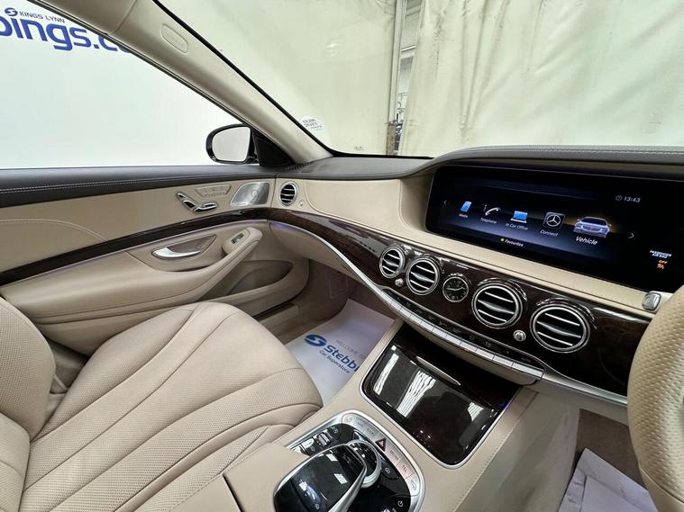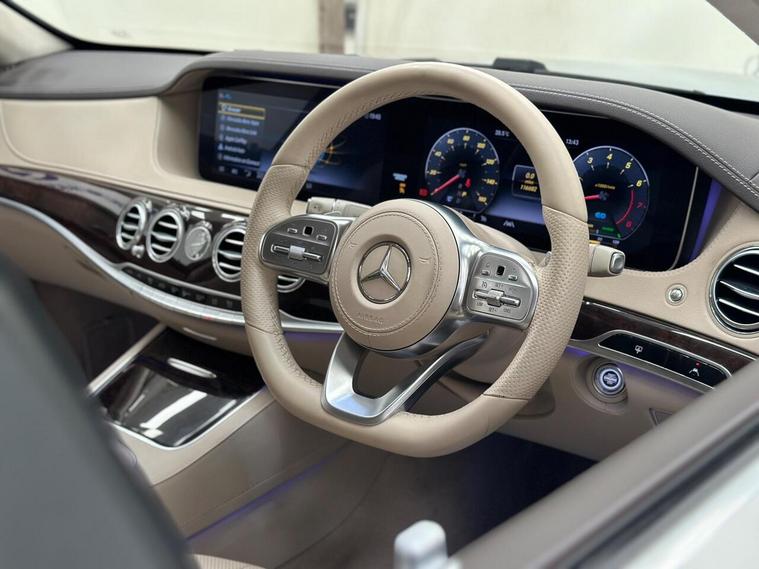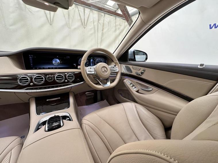 Cherished by only one owner since its registration in 2019, this Mercedes-Benz S Class S500L AMG Line, with its AMG Line trim, offers a blend of luxury and performance. The vehicle is equipped with a 3.0L petrol engine and adheres to Euro 6 emission standards. Inside, you'll find the COMAND Online System, complete with a media interface, touchpad, and Bluetooth connectivity. Smartphone integration, including Apple CarPlay, ensures you're always connected. The Executive Package enhances comfort with memory seats, while heated front and rear seats provide warmth on colder days.