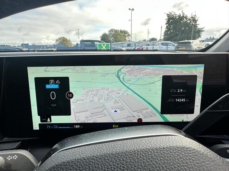 This 2023 Renault Megane E-Tech Iconic is a superb example, having had only one owner since new. This all electric hatchback offers a generous battery total capacity of 60 kWh, providing a maximum range of 280 miles from a full charge. Charging at home with a 7kW charger will take approximately 9 hours and 11 minutes, while rapid public charging can replenish the battery from empty to 80% in as little as 36 minutes. Inside, you'll find a heated steering wheel for those colder mornings, a hands-free keycard for effortless entry, and seamless wireless smartphone integration with Apple CarPlay and Android Auto. The convenience continues with a wireless phone charger and an Around View 3D camera system, offering a 360 degree view for easy parking.
