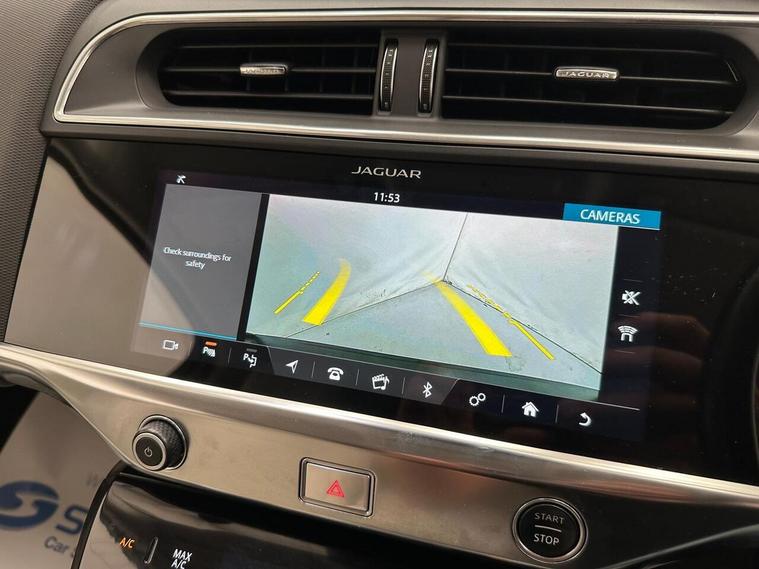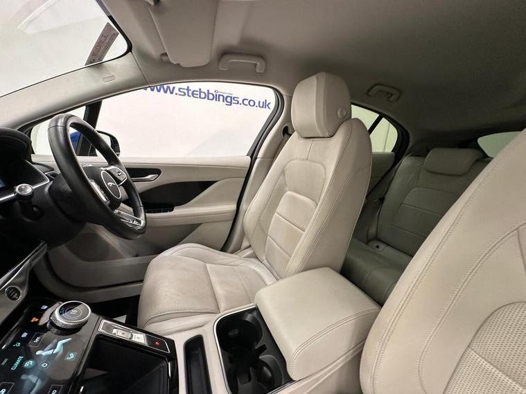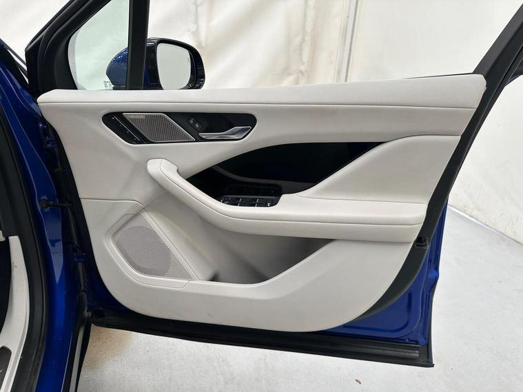 With only one previous owner, this 2019 Jaguar I-PACE 400 SE is an impressive all-electric, four-wheel-drive vehicle. The SE trim comes equipped with premium LED headlights, complete with signature daytime running lights. The Cold Climate Pack ensures comfort with a heated steering wheel, while the Park Pack, including front and rear parking sensors, makes navigating tight spots a breeze. Keyless entry adds convenience, and the Drive Pack enhances safety with blind spot assistance and adaptive cruise control.