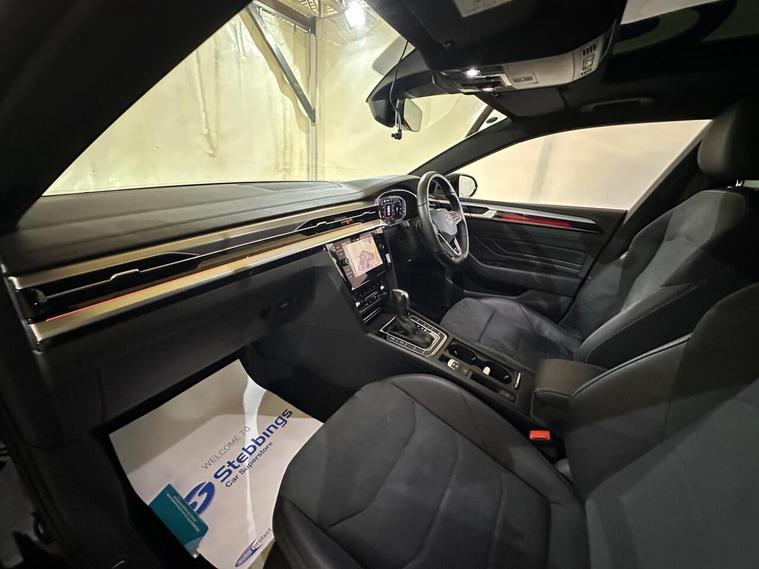 With only one previous owner, this 2022 Volkswagen Arteon 2.0L TSI R-Line is a superb example of a stylish and well-equipped vehicle. The R-Line trim adds a sporty edge to this sleek model, further enhanced by a host of features designed for comfort and convenience. Enjoy the ease of Keyless Entry, complete with hands-free boot opening, and stay comfortable with Climate Control. The integrated Discover Navigation system, which includes streaming and internet connectivity via Bluetooth, ensures you're always connected on the move. Adaptive Cruise Control with Speed Limiter and Front Assist provides a safer and more relaxed driving experience, while the Panoramic Sunroof brings an open and airy feel to the cabin.