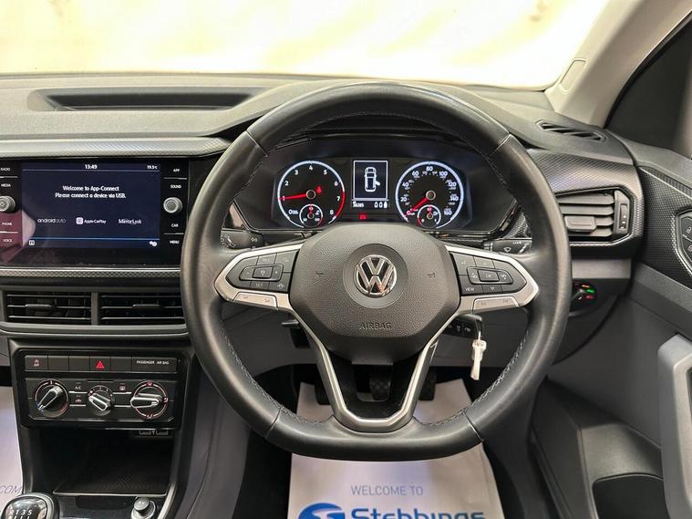 With only 38, 234 miles on the clock, this 2019 Volkswagen T-Cross is a superb example with low mileage for its age. This SE trim T-Cross is powered by a 1.0L petrol engine and meets Euro 6 emission standards. The vehicle is equipped with several features, including ACC - Adaptive Cruise Control, which incorporates standard cruise control, Bluetooth connectivity for telephone and audio, automatic headlamp activation with separate daytime running lights and a 'coming home' feature, manual air conditioning, and Lane Assist, complete with Blind Spot monitoring and lane keeping system.
