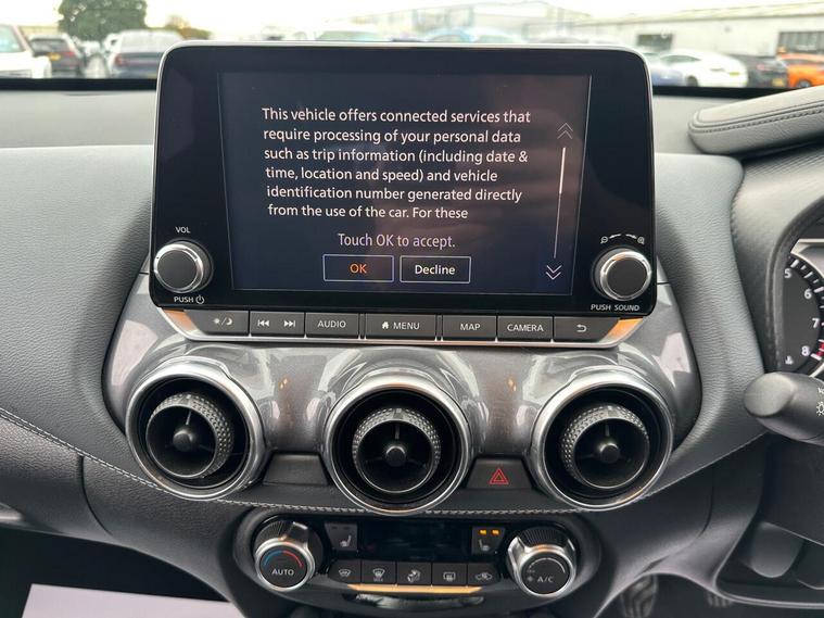 This 2021 Nissan Juke DIG-T Tekna is a superb example, having had only one owner since new. This stylish compact SUV boasts a responsive 1.0 litre petrol engine, meeting Euro 6 emissions standards. Inside, you'll find the desirable Heat Pack, ensuring comfortable journeys with heated seats, while LED headlights provide excellent visibility. For peace of mind, the Advanced Safety Shield Pack includes Blind Spot Assistance and Adaptive Cruise Control, complemented by a 360 degree camera and rear parking sensors for effortless manoeuvring. Stay connected and entertained with USB, AUX input, and Bluetooth connectivity.