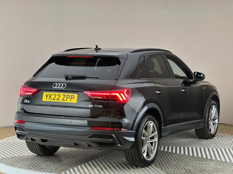 This 2022 Audi Q3 TFSI Black Edition is a superb example, having had only one owner since new. This stylish SUV boasts a 1.5 litre petrol engine, meeting Euro 6 emissions standards. The Black Edition trim enhances its already striking appearance, and you'll appreciate the convenience of the Light and Rain Sensor which automatically activates the headlights, alongside LED headlights with distinctive LED daytime running lights. Inside, the Dual Zone Electronic Climate Control ensures comfort for all occupants, while the Bluetooth interface and Audi Smartphone Interface, complete with wireless Apple CarPlay and Android Auto, keep you connected and entertained on every journey.