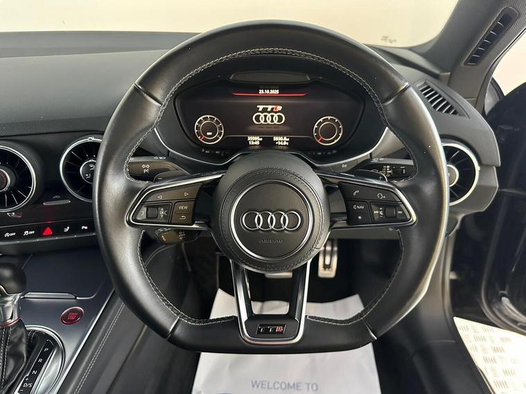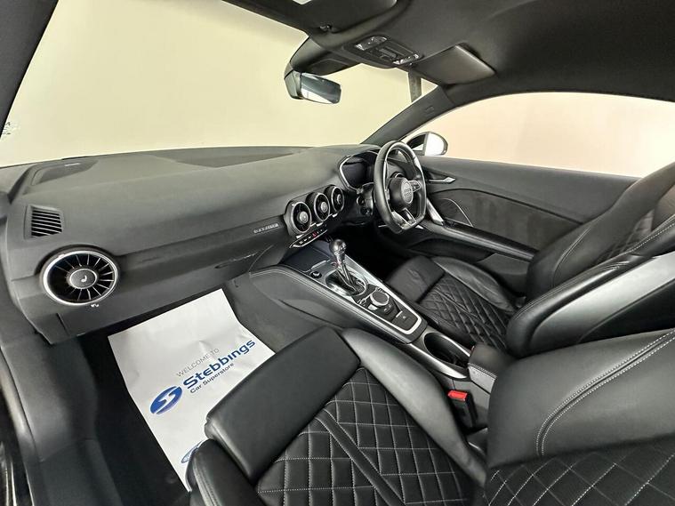 This 2017 Audi TTS TFSI Black Edition boasts exceptionally low mileage for its age, having covered just 35595 miles. As a Euro 6 compliant model, it features a powerful 2.0 litre petrol engine paired with Audi's renowned four wheel drive system, ensuring confident handling in all conditions. The Black Edition trim adds a distinctive aesthetic, complemented by a suite of advanced technology. Notable features include a reversing camera with parking assistance, front and rear parking sensors with selective display, and a comprehensive technology package. The convenience of automatic headlights, activated by the light and rain sensor, and Bluetooth connectivity for your mobile telephone are also included.