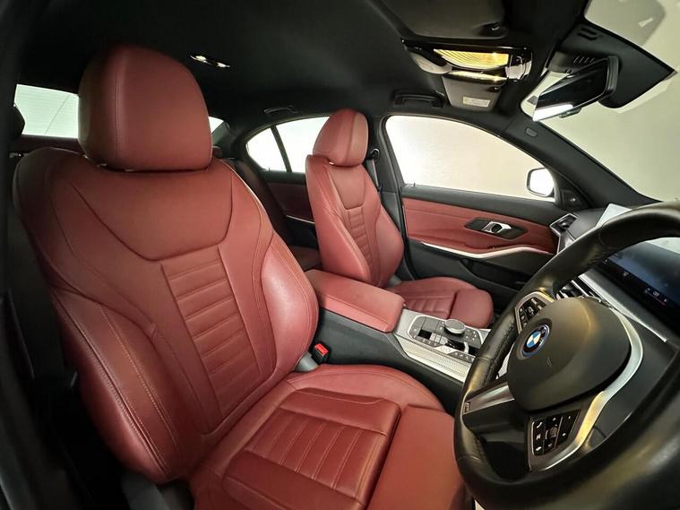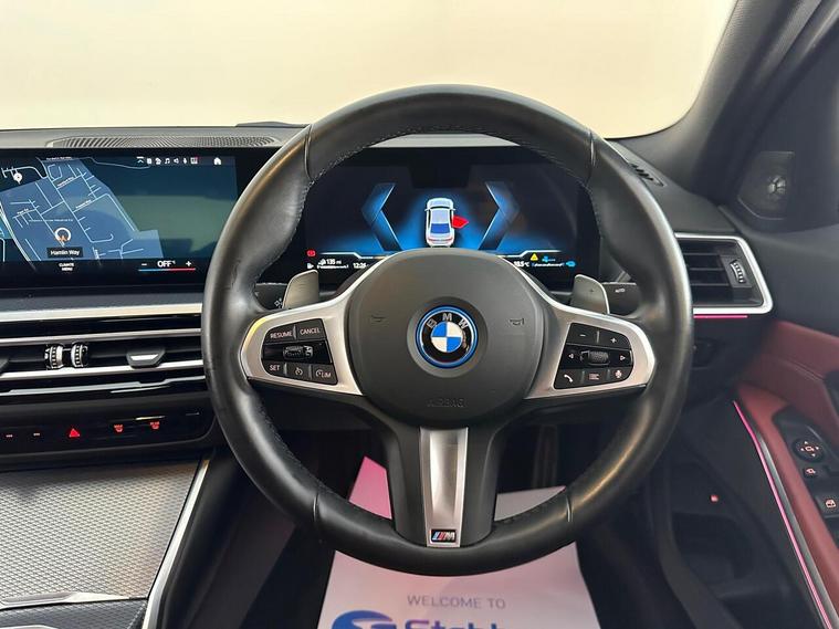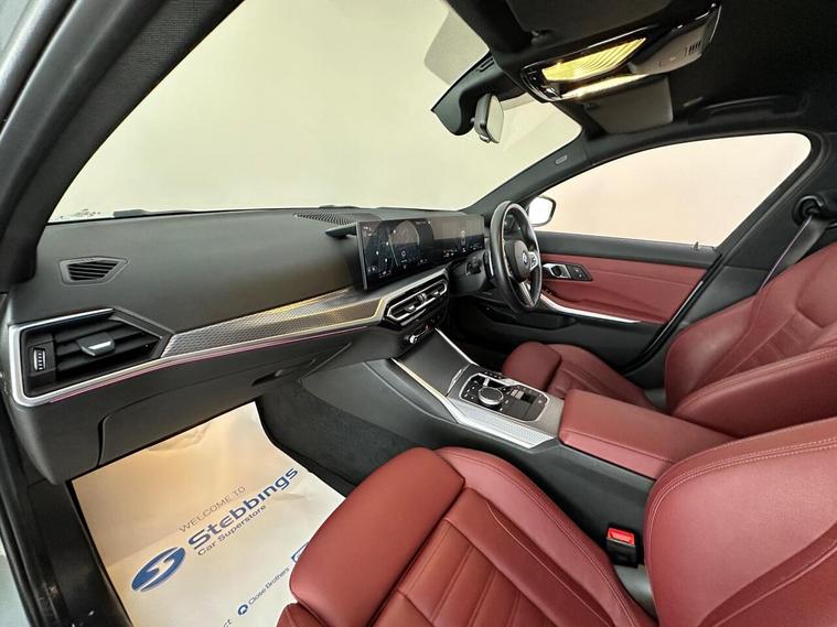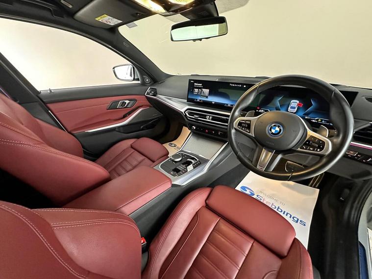 This 2024 BMW 3 Series 330e M Sport boasts exceptionally low mileage for its age, having covered just 13, 529 miles. This plug in hybrid model features a 2.0 litre petrol engine and meets Euro 6 emission standards. Inside, you'll find luxurious Vernasca leather in Tacora Red with Black stitching, complemented by the M Sport trim and the M Sport Pro Package. The Visibility Pack ensures excellent illumination with LED headlights, while the Harman Kardon Surround Audio Sound System provides an immersive listening experience.