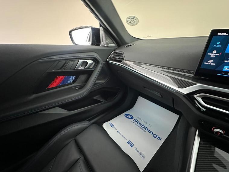 This 2024 BMW M2 BiTurbo is a rare find, having had only one owner since new. This exceptional example boasts a powerful 3.0L Petrol Engine and meets Euro 6 emission standards. Inside, you'll find a wealth of technology and comfort, including the BMW Live Cockpit Professional with Bluetooth and a Head Up Display, automatic two zone climate control, and heated front seats for those colder journeys. For convenience, the Parking Assistant with a rear camera makes manoeuvring effortless, while the Harman Kardon Surround Audio Sound System provides an immersive listening experience.