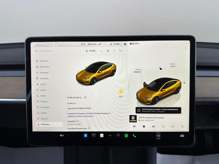 This 2022 Tesla Model 3 presents an exceptional ownership proposition with its remarkably low mileage of just 8350 miles, having been cherished by only one owner since new. As a fully electric vehicle, it boasts a 62 kWh battery offering an impressive maximum range of 317 miles when new. Charging is convenient, with a full charge at home using a 7kW charger taking approximately 8 hours, while rapid charging to 80% from empty can be achieved in as little as 29 minutes at a public charging station. This Model 3 is equipped with advanced features including 2 Zone Climate Control, 12 Way Power Adjustable Front and Rear Heated Seats for ultimate comfort, LED Headlights for enhanced visibility, and parking assistance with both front sensors and a park assist camera.