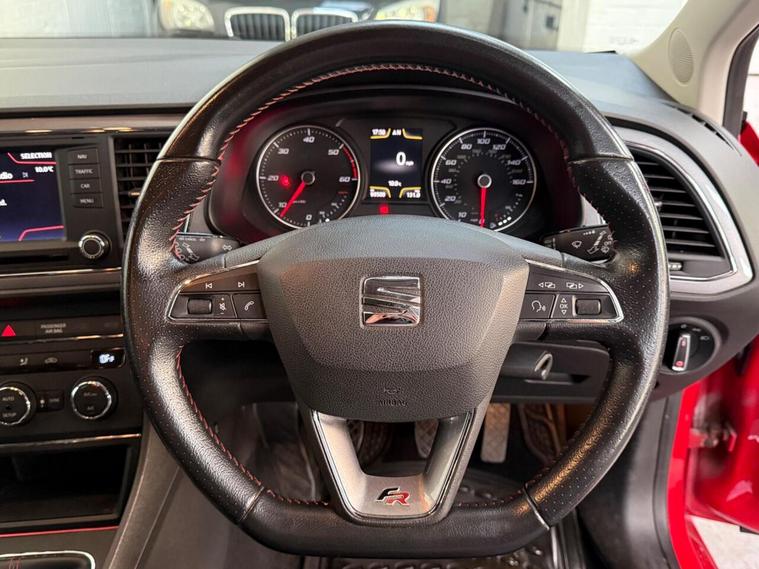- Steering Wheel - Flat-Bottomed Perforated Leather with Red Stitching and FR Logo