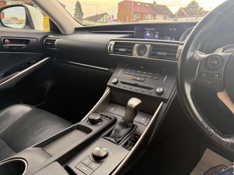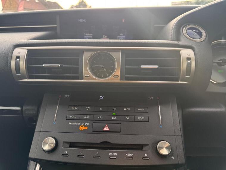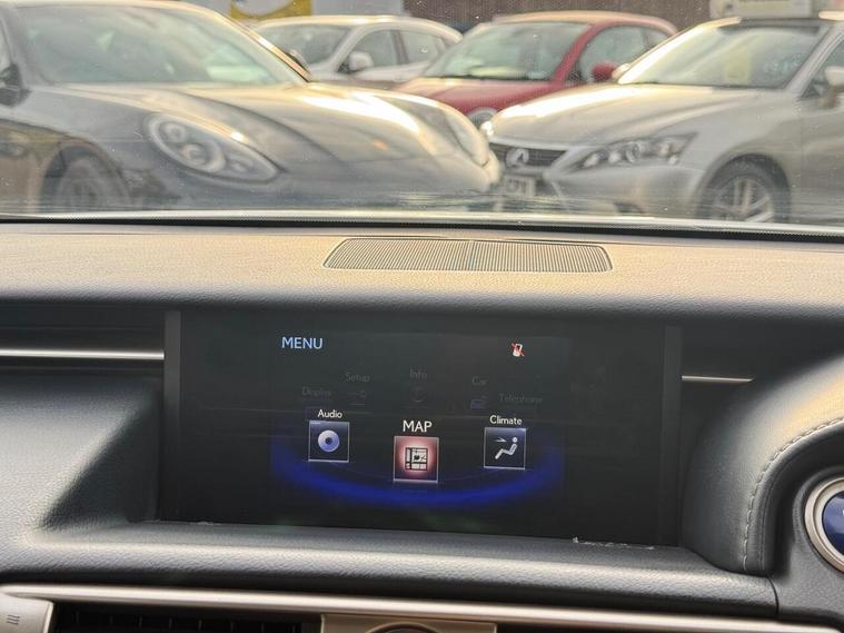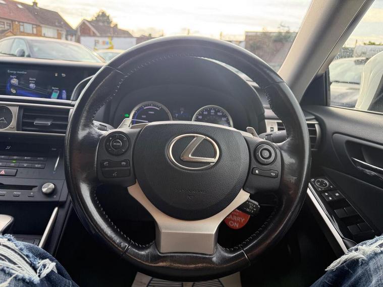 12V Accessory Socket, 17in Alloy Wheels - 10-Spoke, 7in VGA Screen, ABS - Anti-Lock Braking System, ASC - Active Sound Control, AUX Connection, Airbags - Curtain Front and Rear, Airbags - Driver, Airbags - Front Knee, Airbags - Front Side, Airbags - Manual Cut Off Switch, Airbags - Passenger, Airbags - Rear Passenger Side, Analogue Clock with White LED Illumination, Antenna in Rear Glass, Anti Theft System Alarm, Armrest - Front, Armrest - Rear, Audible and Visual Seatbelt Warning, Auto Door Locking, BAS - Brake Assist System, Bluetooth Audio Streaming, Bluetooth Connectivity, Carpets - Black, Climate Control - Dual Zone, Colour Multi Display - 4.2in, Cruise Control, Cup Holders - Front x2, Cupholders x2 - in Rear Armrest, DAB Radio, Daytime Running Lights - LED, Door Mirrors - Electrical Foldable - Heated, Door Mirrors - Integrated Turn Signal Light, Door Mirrors - Puddle Lights, Double Locking Door Lock, Driving Modes - Normal - EV - Eco - Sport, Dual Optitron Instrumentation, EBD - Electronic Brakeforce Distribution, ECB - Electronically Controlled Braking, Electric Windows - Front and Rear, Electrochromatic Rear View Mirror, Front Fog Lights - LED, Front and Rear Seats - Pre-Tensioners, Full Map Navigation - Europe, Glove Box Insert - Black Gloss, HAC - Hill Assist Control, Headlights - Auto Leveling, Headlights - Dusk Sensor, Headlights - High Intensity Discharge - HID Xenon, Headlights - Washers, ISOFIX Child Restraint System, Illuminated Entry System, Immobiliser, Inlays - Black Metallic, Lane Change Flasher Function, Lane Guidance, Leather Gear Stick, Lexus Display Audio - 1 CD, Lexus Media Display, PUH - Pop Up Hood, Parking Assistance - Front Sensor, Parking Assistance - Rear Sensor, Power Meter, Power Steering - Electric Speed Sensitive, Rain Sensitive Windscreen Wipers, Rear and Brake Light - LED, Remote Rotary Dial, Satellite Navigation - Lexus Navigation System, Seats - 60-40 Split Folding Rear, Seats - Front 6-Way Manual Adjustment, Seats - Front Heated, Seats - Front Height Adjustment, Self Restoring Coat Paint, Smart Entry and Start System, Speakers x6 Audio System with Gracenote, Speed Limit Notification, Steering Column - Manual Adjustment, Steering Wheel - 3 Spoke Leather, Steering Wheel - Audio Mounted and Voice Command Controls, Steering Wheel - Paddle Shift, TMC-TPEG - Traffic Information, TPWS - Tyre Pressure Warning System, TRC - Traction Control System, Touch-Sensitive Electrostactic Temperature Control, Tyre Repair Kit, USB Connection, Ultra Violet and Heat Insulating Tinted Glass, VDIM - Vehicle Dynamics Integrated Management, VSC - Vehicle Stability Control, Voice Control Capability, WIL - Whiplash Injury Lessening Front Seats and Headrests, Water Repellent Front Door Glass, Wheel Arches - Rear with Hemming Treatment, Zippo Type Key