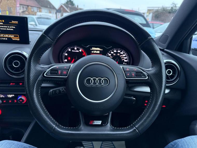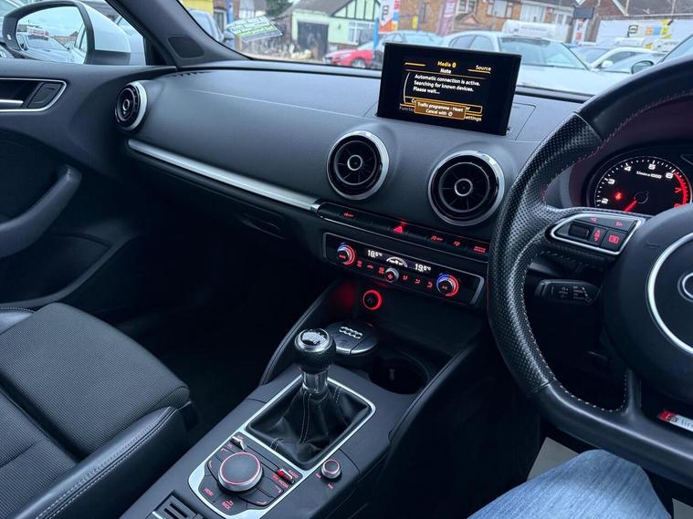 12V Power Socket - Centre Console, 12V Power Socket - Rear, 18in Alloy Wheels - 5-Parallel Spoke Design Partly Polished, 2 x SDXC Card Readers, ABS - Anti-Lock Braking System, AMI - Audi Music Interface, ASR - Anti Slip Regulation, Adaptive Brake Lights, Airbags - Driver, Airbags - Drivers Knee, Airbags - Front Passenger, Airbags - Front Side, Airbags - Head Level Side For Front and Rear, Alarm - Thatcham Category 1, Aluminium Interior Elements, Anti Theft Locking Wheel Bolts, Audi Drive Select, Audio Output - 80 Watts, Car Jack, Child Locks - Manual, Cloth Headlining in Black, Coat Hooks - B Pillar - Both Sides, Colour Drivers Information System - DIS, DAB Digital Radio, Display Screen Colour - 5.8in, Door Mirrors - Body Coloured with Integrated LED Indicators, Door Mirrors - Electrically Adjustable and Heated, Door Sill Trims with S Line Logo, Dual-Zone Electronic Climate Control, EBD - Electronic Brakeforce Distribution, EDL - Electronic Differential Lock, ESP - Electronic Stability Programme, Electric Windows - Front and Rear, Electromechanical Parking Brake, Electromechanical Power Steering, Exhaust Tailpipe - Twin, First Aid Kit, Fog Lights - High Gloss Black Surrounds, Front Centre Armrest, Front Fog Lights, Front Passenger Airbag Deactivation Switch, Front Sports Seats, Front and Rear Floor Mats, Gear Knob - Perforated Leather, Glovebox - Illuminated, Headlights - Automatic Dynamic Range Control, Headlights - Bi-Xenon Plus, Headlights Washers, Heated Rear Windscreen, Heated Windscreen Washer Jets, Height Adjustable Boot Floor, Hydraulic Brake Assist, ISOFIX Child Seat Mounting for Front Passenger and Rear Outer Seats, Illuminated Vanity Mirrors, Immobiliser, Inlays - Matt Brushed Aluminium, Interior Elements - Air Vents - Aluminium, Interior Elements - Frame Around the Inside Door Handle - Aluminium, Interior Elements - Glove Compartment - Aluminium, Interior Elements - Window Control Switches - Aluminium, Interior Lighting, LED Daytime Running Lights, LED Rear Indicators, LED Rear Lights, Luggage Compartment - Illuminated, Luggage Compartment - Lashing Points x4, Luggage Compartment - Side Net, MMI Radio, Mobile Telephone Preparation - Bluetooth Interface, Model and Engine Technology Badges at Rear, Pollen Filter, Preparation for SD Card-Based Navigation System, Radiator Grille - High Gloss Black, Rear Parcel Shelf Removable, Remote Central Locking with 2 Fold Away Keys, Rest Recommendation System, S Line Badges on Front Wings, S Line body styling, S line Design Front Bumper-Rear Diffuser-Side Sills and Roof Spoiler, Seat Belt Reminder for All Seats, Seats - Adjustment for Cushion Depth, Seats - Extendable Thigh Support, Seats - Front Height Adjustment, Seats - Split Folding Rear - 60-40, Secondary Collision Brake Assist, Smoking Package, Space Saver Spare Wheel, Speakers x8, Sport Suspension, Steering Wheel - 3-Spoke Leather-Multifunction-Flat Bottomed, Steering Wheel - Height and Reach Adjustable, Steering Wheel - Multi-function, Storage Compartment - Centre Console, Storage Compartment Under Rear Seat, Storage Compartments - Door Side Trims, Storage Net in Front Passenger Footwell and Front Seat Backrests, Storage and Luggage Package, Sun Visors - with Covered Vanity Mirrors, Tool Kit, Tyre pressure monitoring System, USB Connection, Voice Control, Warning Triangle, Washer Fluid Level Indicator, Window Surrounds - Aluminium