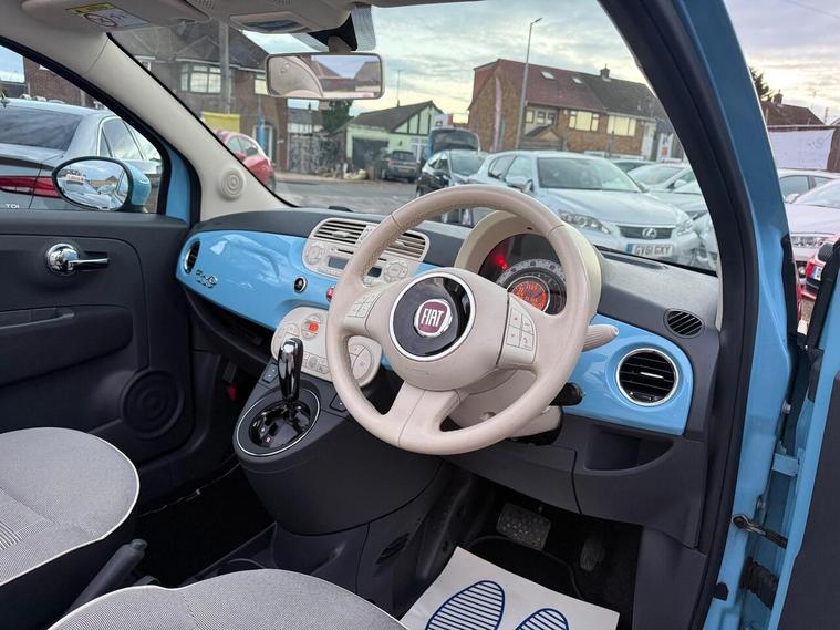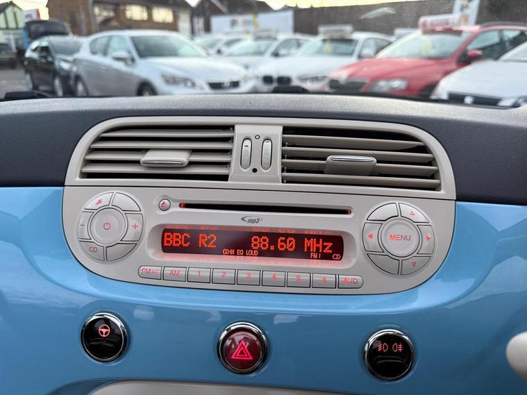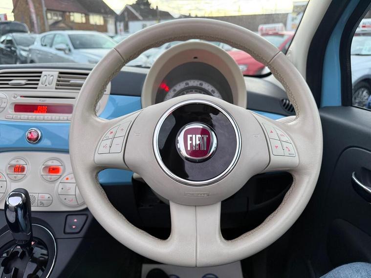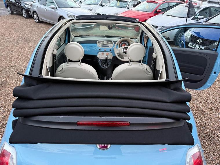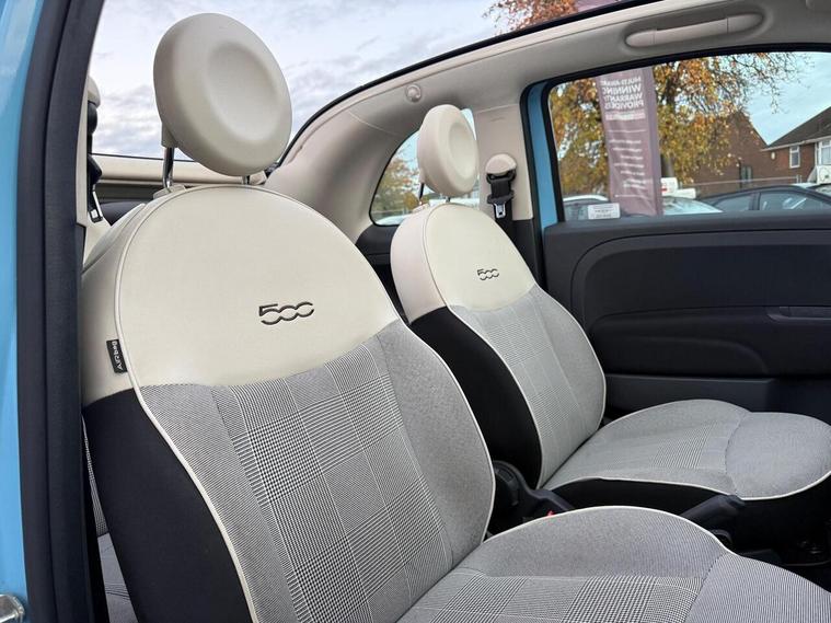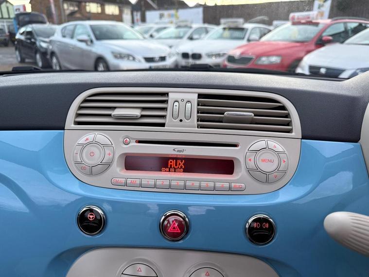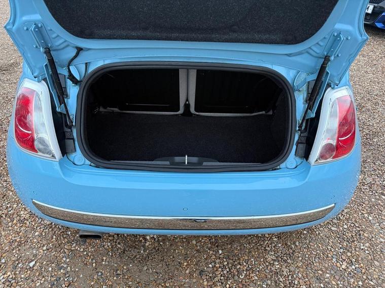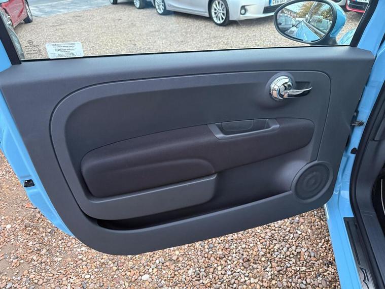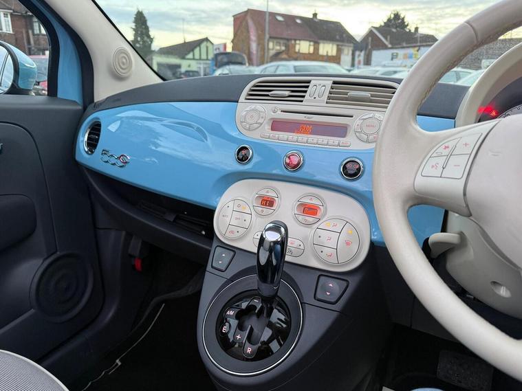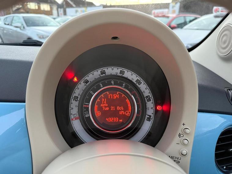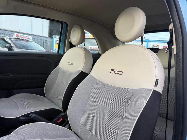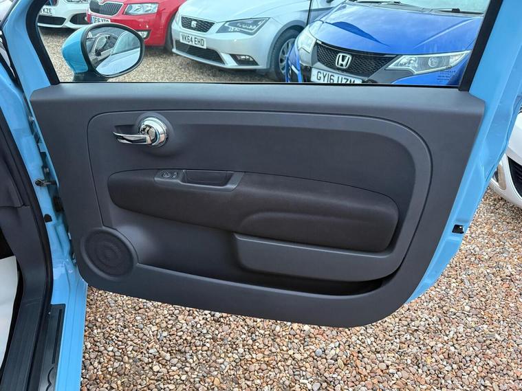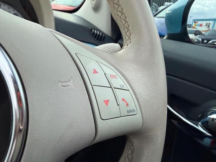 12V Socket - Front, 16in Alloy Wheels - 74A, ABS - Anti-Lock Braking System, ASR - Anti-Slip Regulation, Airbags - Driver, Airbags - Front Side, Airbags - Passenger, BAS - Brake Assistance System, Blue&Me - Hands Free System with USB Port, Body Coloured Bumpers, Body Coloured Side Rubbing Strips with 500 Logo, Bumpers - Chrome Inserts, Chrome exhaust tailpipe, Chrome Kit, Chrome Window Contours, Climate Control - Automatic Monozone, Daytime Running Lights, Door Handles - Chrome, Door Handles Interior - Chrome, Drivers Knee Airbag, Dualdrive Power Steering, EBD - Electronic Brakeforce Distribution, ESP - Electronic Stability Programme, Electric Front Windows, Electrically Adjustable Heated Door Mirrors, Exterior Temperature Sensor, Fix and Go Puncture Repair Kit, Fog Lights, GSI - Gear Shift Indicator, Grab Handle, Height Adjustable Drivers Seat, Hill Holder, Kickplates - Chrome, Locking Wheel Nuts, MSR - Motor Slip Regulation, Radio-CD and MP3 Player, Rear Parking Sensors, Remote Central Locking, Seats - Passengers Memory Function, Seats-back Pockets, Space Saver Spare Wheel, Split Folding 50:50 Rear Seat, Steering Wheel - Black, Steering Wheel - Height Adjustment, Steering Wheel - Leather with Audio Controls, Steering wheel audio controls, Storage Under Passenger Seat, Thermal Windows, Tyre Pressure Monitor System, USB Port, Voice Recognition, Window Airbags, 15in Alloy Wheels - 73Z, Air Conditioning, Kickplates