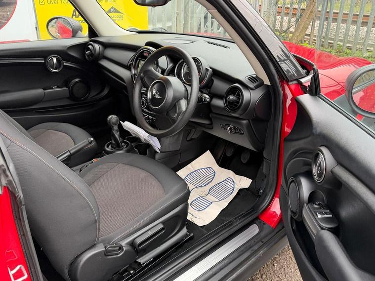 12Volt Socket in Front Centre Console, 15in Steel Wheels, 3 point seatbelts on all seats, 3rd Brake Light - LED Along Top of Rear Window, Air Conditioning - Manual, Airbags for Driver and Front Passenger - 6 Airbags as Standard, Alarm and Immobiliser - Thatcham CAT 1, Anti-Lock Braking System - ABS, Automatic Door Window Lowering by Approx 6mm When Door Opens, Bluetooth Hands Free Function with USB Audio, Body Coloured Fuel Filler Cap in Rear Right Side Panel - Linked to Central Locking, Boot Release via Remote Control, Brake Pad Wear Indicator, Chrome Bezels around Rear Lights and Headlights, Colour Line - Carbon Black, Condition Based Service, Crash Sensor, Cupholders - Two in Front and One in the Rear Centre Console, DAB Tuner, DTC - Dynamic Traction Control with EDLC - Electronic Differential Lock Control, Daytime Driving Lights, Decorative Rings Surrounding Dashboard Instruments in Chrome Plated, Door Handles - Chrome Plated, Door Sill Finishers - Metal Look and Model Dependent Lettering, Dynamic Stability Control - DSC, Easy Entry Access to the Rear Seats and Memory Function for Driver's Seat Base, Exhaust Tailpipe - Visible - Single - Round - Left Hand Side, Exterior Mirrors - Aspheric on Drivers Side - Electrically Adjustable, External Visible VIN, Foldable Rear Backrest 60-40, Follow Me Home Function, Front Fog Lights, Front Passenger ISOFIX and Airbag De-Activation Switch, Front Side Indicators - Orange, Fuel Pump Automatic Cut-Off in Crash Situation, Gearshift Lever Knob - Plastic, Gearshift-Selector Lever and Handbrake Lever Gaiters in Sensatec Artificial Leather, Halogen Lights for Low Beam and High Beam Headlights, Handbrake Lever Grip - Plastic, Headlight - Beam-Throw Control Electrical with Manual Adjustment, Headliner - Satellite Grey, Headrests For All Seats - Manually Adjustable and Two Rear Folding Headrests, Heated Mirrors and Windscreen Washer Jets, Heated Rear Window with Automatic Deactivation, Heated Window Heater, Heater with Mechanical Control and Recirculating-Air Button, Intelligent Emergency Calling - E-Call, Interior Door Handles - Chrome Plated, Interior Lights - Integrated into Centre Front Headliner, Interior Mirror - Mechanical Anti-Dazzle, Lashing Eyes in Luggage Compartment, Locking System with Central Locking, Luggage Compartment - Light, MINI Central Display, MINI Mobility System, MINI TeleServices, MINIMALISM Fuel Saving Technology, Mechanical Seat Adjustment - Six Way Drivers Seat, Microfilter, Non Smoker Package, Oddments Trays at Rear - Right and Left, On-Board Computer, Personal Profile, Power Steering with Servotronic, Radiator Grille - Chrome Border and Slats in High-Gloss Black, Radio with Four-Line Display, Rear Fog Light, Rear window wiper, Reversing Light, Revolution Counter, Roof Spoiler Painted in Roof Colour, Roof in Body Colour, Side Scuttles Black with Integrated Direction Indicator Orange, Sills - Bumper Edges - Wheel Arch Cover in Black, Speakers - Two Mid Range in Front Doors and Two Woofers under Front Seats, Speedometer on Steering Column, Stainless Steel Embellisher at Bottom Edge of all Windows, Standard Seat for Driver and Front Passenger, Start-Stop Button with Keyless Start, Steering Wheel - 2-Spoke Plastic, Steering Wheel Column Adjustment Mechanically in Height and Length, Storage Options, Sun Visors with Integrated Vanity Mirrors on Drivers and Passengers Sides, TPWS - Tyre Pressure Warning System, Tailgate Handle - Black Matt, Tool Kit in Luggage Compartment, Twin horns, Window Lifts - Electrical for Drivers and Front Passengers Sides