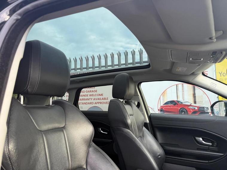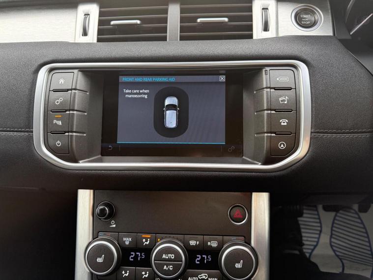 12-12 Way - Electric Seats, 12V Auxiliary Power Sockets - Front and Luggage Compartment, 18in Alloy Wheels - 7 Spoke - Style 706 - Sparkle Silver Finish, 5in TFT Driver Information Centre, 8in High Resolution Touch Screen, ABS - Anti Lock Braking System, Airbags - Driver Knee, Airbags - Front - Driver and Front Passenger, Airbags - Side Curtain - Driver and Front Passenger and Row Two, Auto-Dimming Interior Mirror, Auxiliary Power Socket - Front and Luggage Compartment, Bluetooth Telephone Connectivity with Streamed Audio, Body coloured door handles, Body Coloured Roof with Matching Spoiler, Body-coloured Door Claddings, Cabin Air Quality Sensor, Carpet Mats with Edging, Centre console - Covered Storage Compartment, Climate Control - Automatic with Air Filtration and Automatic Recirculation, Climate Control - Rear Vents, DAB - Digital Audio Broadcast, DSC - Dynamic Stability Control, Dark Techno Silver Inner Tow Eye Finisher, Door Mirrors - Narvik Black, EBA - Emergency Brake Assist, EBD - Electronic Brake-Force Distribution, EDC - Engine Drag Torque Control, EPAS - Electronic Power Assisted Steering, Electric Parking Brake, Evoque Badge in Silver, Exhaust Finishers - Bright Square, Exterior Mirrors - Electric Adjustment-Heated-Power Fold-Puddle Lamps with Projected Evoque Graphic-Direction Indicators, Front Fog Lights, Front Height-adjustable Seat Belts, Front and Rear Parking Aid, Global Opening for all Windows, HDC - Hill Descent Control, HSA - Hill Start Assist, Hazard Warning Lights Under Heavy Braking, Headlight Power Wash, Headlights - Automatic High Beam Assist, Headlights - Xenon with Automatic Levelling and LED Signature Lights, Heated Front Seats, Heated Rear Screen, ISOFIX Mounting Points in Outboard Rear Seats, Illumination - White Ambient Lighting, Illumination - White Lighting, Illumination for Footwell-Glovebox-Load Compartment Lamp x1, InControl Protect, InControl Touch - Level 1, InControl Touch Navigation, Interior Mood Lighting, Lane Departure Warning with Autonomous Emergency Braking, Locking Wheel Nuts, Luggage Compartment - Anchor Points, Luggage Cover, Manual Tailgate, Manually Adjustable Steering Column - Four-Way, Narvik Black Fender Blade, Narvik Black Grille, No Engine Badge, Oxford Leather Gear Knob, Oxford Leather Steering Wheel with Audio Controls and Cruise Control, Parking Aid - Front, Proximity Sensing and Touch Detection For Overhead Map Lights, Push Button Start, RSC - Roll Stability Control, Rain Sensing Windscreen Wipers and Automatic Headlights - Automatic, Range Rover Smart Key Controls - Remote lock-Unlock-Double Lock-Lights on Tailgate Open, Rear Centre Armrest, Satin Brushed Aluminium Centre Console Finisher, Seat Belt Reminder, Seats - Rear Centre Head Restraint, Side Sills - Anthracite, Sun Visors - Illuminated Vanity Mirrors, TCS - Traction Control System, TPMS - Tyre Pressure Monitoring System, TSA - Trailer Stability Assist, Tailgate Finisher in Narvik Black, Terrain Response, Three Seat Bench - 60-40 Split, Torque Vectoring, Trim Finisher - Satin Brushed Aluminium, Tyre Repair System, USB Connectivity, Volumetric Alarm, Windscreen - Heated, Windscreen Washer Jets - Heated, 12V Power Socket, 12V Socket in Loadspace, AM-FM Radio, Airbags - Driver and Passenger Side, Airbags - Full Size Driver, Airbags - Full Size Passenger, Airbags - Row One and Two Head Curtain, Alarm, Armrest - Rear Centre with Storage Compartment and 2 Cupholders, Audible Seat Belt Warning, Audio Connectivity System, Audio System - DAB, Automatic Headlight Levelling, Automatic Headlights, Autonomous Emergency Braking, Bluetooth Audio Streaming, Bluetooth Phone Connection, Carpet Mats - Front and Rear with Edging - Lunar, Climate Control - Automatic with Air Filtration and Air Quality Sensing for Automatic Recirculation, Cruise Control, Daytime Running Lights, Delete Engine Badge, Door Mirrors - Electric Adjustment - Heated and Power-Folding with Puddle Lights, EPB - Electronic Park Brake, Electric Windows - Front and Rear, Exterior Door Handles - Premium Body Coloured, Fender Vent Blade - Narvik Black, Footwell Lights - Front, Front and Rear Bumpers - Body Coloured, Grille Bars - Narvik Black, Grille Surround - Brunel, Headlining - Cirrus Morzine, ISOFIX Child Seat Anchor Points, InControl Protect (3 Year Subscription From New), LED Front Signature Lights, Land Rover - Tyre Repair System, Land Rover Audio System, Lane Departure Warning, Loadspace Cover, Multi-Function Steering Wheel, Parking Aid - Rear, Rain Sensing Windscreen Wipers, Rear Cupholders, Remote Central Locking, Roof - Body Coloured, Seats - 3 Seat Bench in Rear, Seats - 60/40 Split, Seats - Driver Height Adjustable, Seats - Drivers 8-Way Adjustment, Seats - Front Passenger 8-Way Adjustment, Speakers x8, Steering Column - Manual For Height and Reach Adjustment, Steering Wheel - Oxford Leather, Trip Computer, USB Socket - Front, Windows - Heated Rear Windscreen, Xenon Headlamps with LED Signature