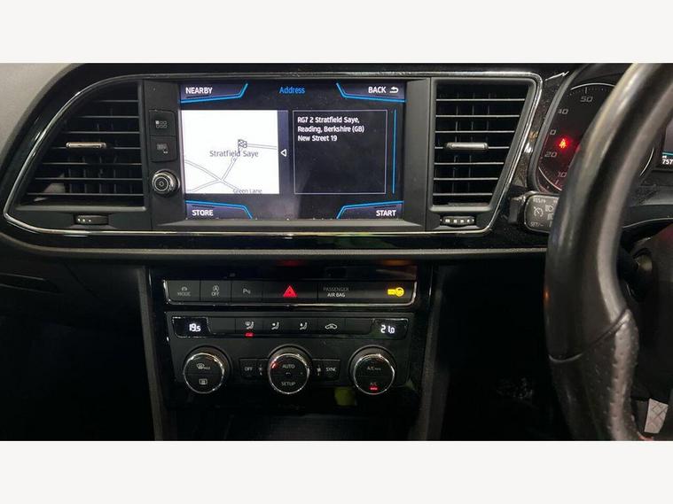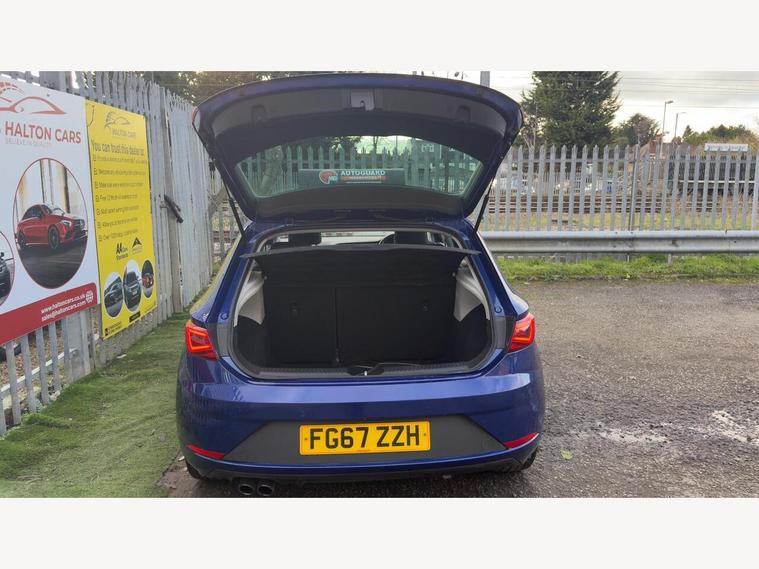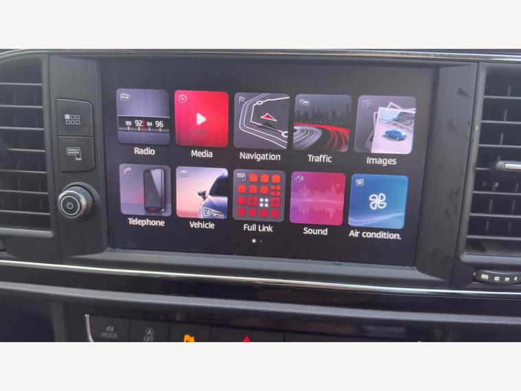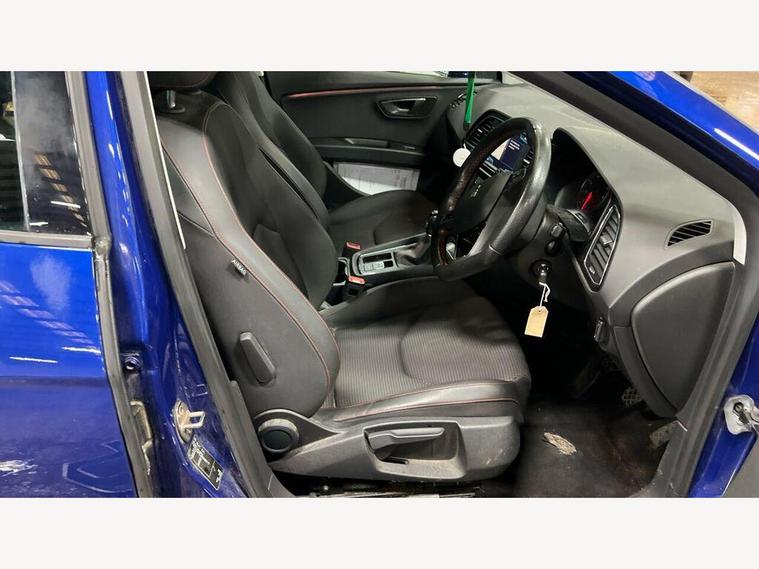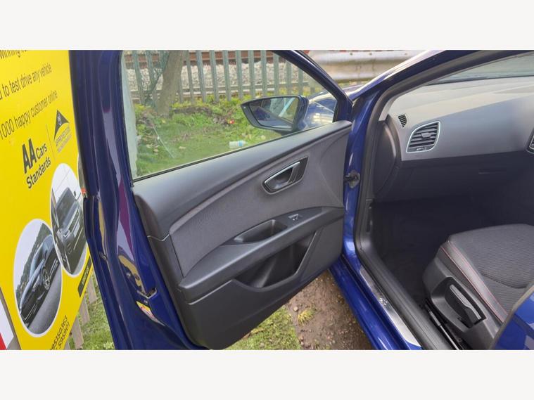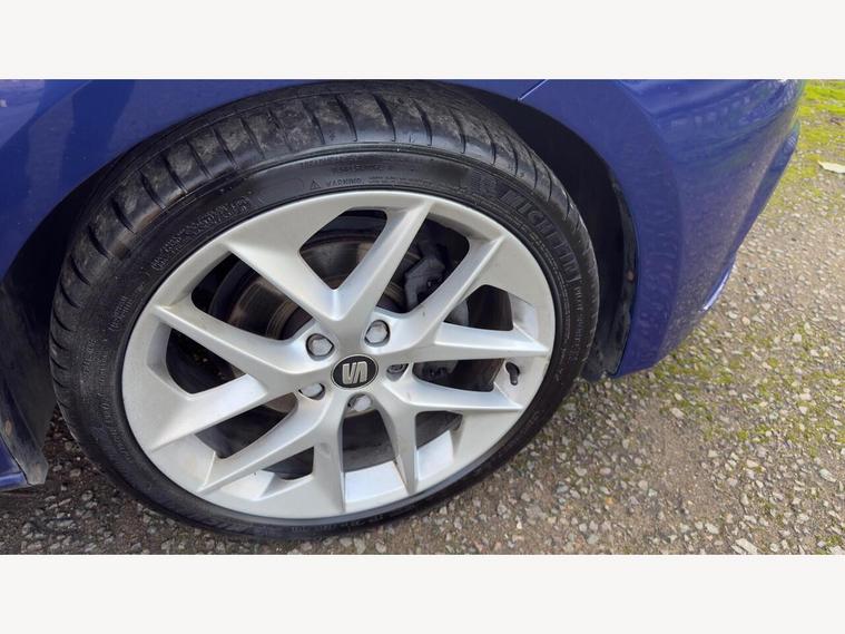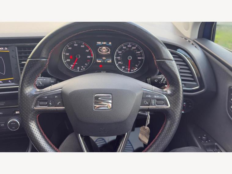12V Power Supply in Centre Console, 17in Alloy Wheels - Dynamic 30-2, 7 Airbags, ABS - Anti-Lock Braking System - TCS - Traction Control System, Active Front Head Restraints and 3 Rear Head Restraints, Aluminium Front Door Sill Trims with FR Logo, Body-Coloured Door Handles, Body-Coloured Door Mirrors with Integrated LED Indicators, Boot Storage Net, Bumpers - Exclusive FR Front and Rear, Cargo Rings in the Boot, Cruise Control, Dark Tinted Rear Windows, Driver and Passenger Seat Height Adjustment, Driver and Passenger Sunvisor with Covered and Illuminated Mirrors, Drivers Seat Lumbar Adjustment, Dual Zone Climate Control, ESC - Electronic Stability Control and Tyre Pressure Warning Light Indicator, Electric Parking Brake Including Autohold Function, Electrically Folding Door Mirrors, Electro-Mechanical Power Steering, Electronic Differential Lock System - XDS, Emergency Tyre Repair Kit, Front Assist with City Emergency Braking, Front Seat Back Storage Pockets, Front Sports Seats, Front and Rear Electric Windows, Fuel Filler Flap linked to Central Locking, Full LED Headlights, Gearshift Indicator, Head Restraints - Height Adjustable Front, High Centre Console, High Gloss Black B and C Pillars, Hill Hold Control, ISOFIX Points in Outer Rear Seats with Top Tether Anchorage Points, Illuminated Door Sill Plates, Illuminated glovebox, Instrument Lighting with Brightness Control, Interior Chrome Detailing, Lights Left On Warning Buzzer, Low fuel warning light, Lower Suspension - 15mm, Media System Plus, Multi Coloured Ambient Lighting, Multi-Collision Braking System, Navigation System, Outside Temperature Gauge, RPM Counter, Radiator Grille Frame in Chrome, Radiator Grille in Black, Reading Lights Front and Rear with Ambient Spots - Boot Lights and Illuminated Foot Area, Rear Parking Sensors, Remote Central Locking with Deadlocks, SEAT Drive Profile, SEAT Full Link Smartphone Integration - Mirror Link - Apple CarPlay - Google Android Auto, Seatbelt Reminder - Front, Seats - Passenger Lumbar Adjustment, Split Folding Rear Seats - 60-40, Sports Suspension, Steering Wheel - Flat-Bottomed Perforated Leather with Red Stitching and FR Logo, Storage box under Drivers Seat, Trip Computer, Two Remote Keys with Window Open-Close - Door Mirror Folding and Boot Opening Functionality, Visual Twin Exhaust Pipes