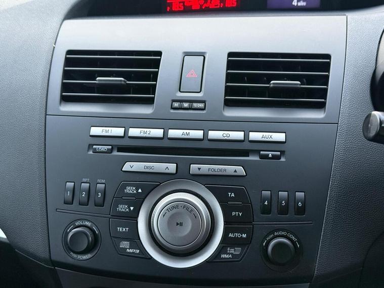 12v Power Socket - Centre Armrest, 16in Alloy Wheels, Aux Socket, Air Conditioning - Dual Zone Climate Control, Airbags - Curtain Front and Rear, Airbags - Driver, Airbags - Front Passenger, Anti Lock Braking System - 4W-ABS, Armrest - Rear, Audio Systems - AM-FM Radio-MP3-CD, Audio Systems - AM-FM-Modular Radio-6CD Changer-Speakers x6, Auto Dimming Rear View Mirror, Black Out Finish Dials with White Illumination, Bluetooth Hands Free Phone Kit and Mobile MP3 Player Control System, Bumpers - Body Coloured, Central Locking, Cruise Control, DSC - Dynamic Stability Control, Digital Clock, Door Handles - Body Coloured, Door Inner Handles - Front and Rear Bright, Door Mirrors - Electrically Adjustable-Heated-Folding-Body Coloured, Door Pockets - Front, Dusk Sensing Automatic Headlights, EBA - Emergency Brake Assist, EBD - Electronic Brakeforce Distribution, ESP - Electronic Stability Control, Electric Windows - Front and Rear with One Touch Auto Up and Down on Drivers Side, Emergency Stop Signalling System - ESS, Front Centre Console with Storage Box Two Lidded Cup Holders, Front Fog Lights, Front Side Airbags, Gear Knob - Leather, Glovebox Illumination, Grab Handles - Front Passenger and Two Rear with Coat Hooks, Head Restraints - Active Front, Headlights - Halogen, Headlights - Reminder, Heated Front Windscreen, Heater Ducts - Rear, High Mounted Stop Light, ISOFIX Child Seat Anchorage for Outer Rear Seats, Mazda Advanced Impact Distribution and Absorption System - MAIDAS, Multi Information Display inc Trip Computer-Digital Tachometer-Fuel Water-Exterior Temp Gauges, Overhead Console with Sunglassess Holder, Pollen Filter, Power Steering, Rain-Sensing Front Wipers, Remote Central Door Locking with Two Jackknife Type Retractable Keys and Deadlocking, Scuff Plates - Front and Rear, Seatback Pocket - Passenger Side, Seats - 60-40 Split Folding Rear, Seats - Drivers Dial Reclining and Height Adjustment, Seats - Drivers Lumbar Adjustment, Space Saver Spare Wheel, Speakers x6, Spoiler - Rear Roof Body Coloured, Steering Wheel - Height Adjustment, Steering Wheel - Leather, Steering Wheel - Mounted Remote Audio Controls, Sunvisors - Drivers and Passengers with Covered Vanity Mirror-Ticket Holder-Illumination, TCS - Traction Control System, Thatcham Category 1 Alarm and Immobiliser, Welcome Mode Lighting - Standard Cockpit Dome Light - Action Illumination of Audio System, 6CD Changer, ABS - Anti Lock Braking System, Air Conditioning - Automatic Climate Control, Armrest - Rear Centre with Cupholders x2, Central Locking - Remote with Deadlocking, Electric Windows - Front and Rear, Trip Computer