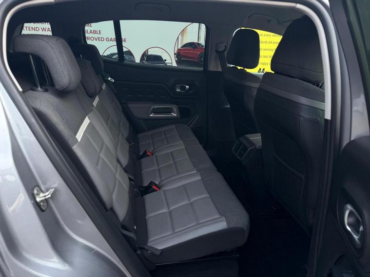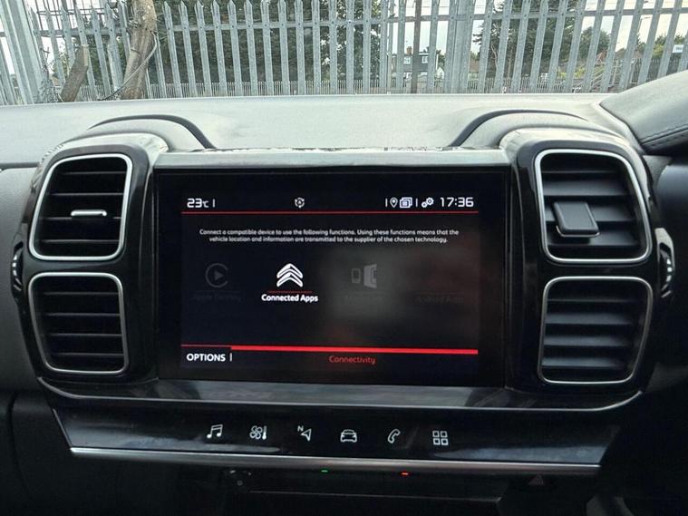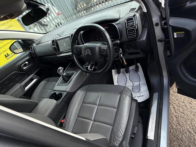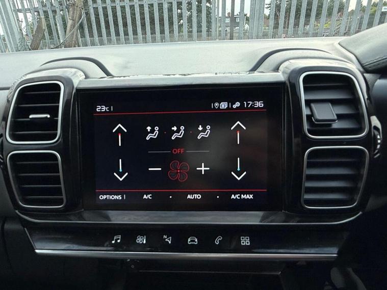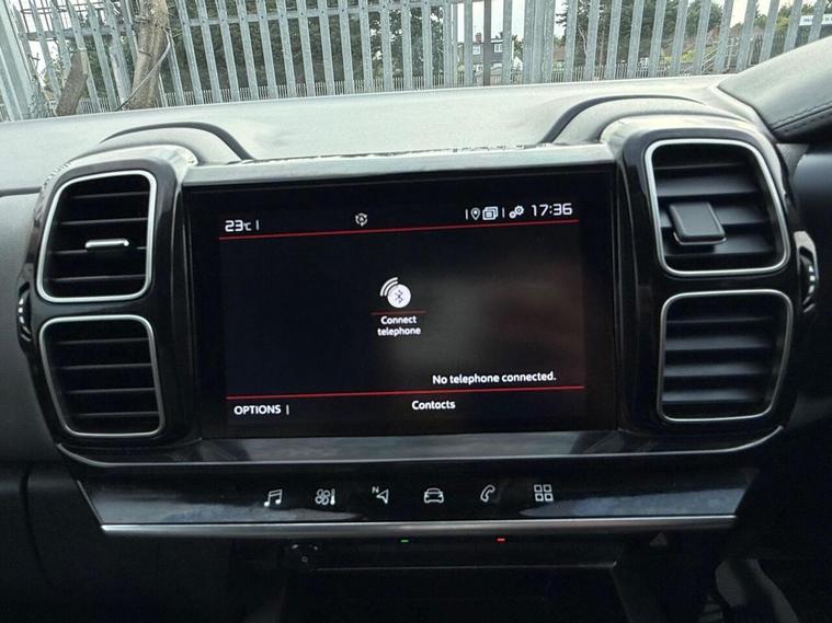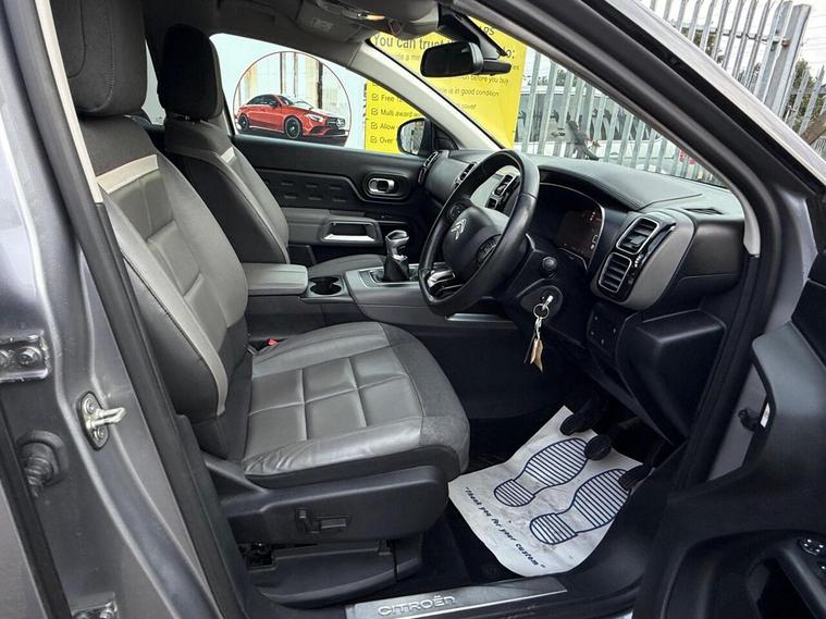 12.3in Customisable TFT Instrument Display, 12V Socket in Front of Cabin, 12V Socket in Glovebox, 12v Socket in Boot, 18in Alloy Wheels - Swirl Two Tone Diamond Cut, 2 Central Illuminated Cup-Holders, 2 Position Boot Floor, 2x USB Sockets, 3 Independent Full Size Rear Seats with Adjustable Recline Angle, 3D LED Rear Lights, ABS with Electronic Brakeforce Distribution - EBD, Acoustic Laminated Windscreen with Rain and Brightness Sensors, Active Blind Spot Monitoring System, Active Lane Departure Warning System, Advanced Active Safety Brake, Advanced Comfort Seats, Air Recirculation When Reverse Gear is Engaged, Air Vents for Rear Seat Passengers, Airbags - Adaptive Driver and Front Passenger Airbags, Airbags - Curtain Front and Rear, Airbags - Driver and Front Passenger Side Airbag, Airbump Panels with Colour Insert on Lower Portion of the Doors, Alarm, Aluminium Front Citroen Embossed Sill Scuff Plates, Anti Odor and Pollen Filter, Auto-Dimming Electrochrome Rear View Mirror, Automatic Door Locking When Moving Off, Automatic Dual Zone Climate Control, Automatic Hazard Light Activation Upon Heavy Brake Application, Automatic Headlight Activation, Automatic Windscreen Wipers, Auxiliary Socket, Bluetooth Telephone Facility, Body colour door handles, Body-Colour Rear Spoiler with Stainless Steel Edging Trim, C5 Aircross Monogramme on Boot Rear, Central 8in Capacitive Touch Screen, Central Front Armrest with Butterfly-Wing Opening and Illuminated Storage Compartment, Citroen Connect Box with Emergency and Assistance System, Citroen Connect Nav - Includes TomTom Live Updates - 3 Year Subscription, Citroen Logo and Monogramme on Rear, Coffee Break Alert, Collision Risk Alert, ConnectedCAM Citroen, DAB - Digital Audio Broadcasting - AM-FM and MP3 Compatible Radio with Two Tweeters and Four Speakers, DSC - Dynamic Stability Control and ASR - Electronic Anti-Skid System, Dark Tinted Rear Windows and Rear Windscreen, Dashboard - Open Central Storage Compartment, Driver and Front Passenger Adjustable Headrests, ECO Plus Mode, Electric - Heated and Folding Body Coloured Door Mirrors with Integrated LED Indicator and Kerb Puddle Light, Electric Child Locking Functionality on Rear Windows and Doors, Electric Driver Seat Adjustment - Height - Fore/Aft and Backrest Angle, Electric Power Assisted Steering with Reach and Rake Adjustable Steering Column, Electronic Code Immobiliser, Electronic Parking Brake, Exterior Temperature Indicator with Ice Warning, Fixing Rings in Load Area x4, Front Fog Lights with Cornering Function, Front Parking Sensors, Front Reading and Welcome Lights, Front Three-Point Retractable Seatbelts - Height-Adjustable - with Pre-Tensioners and Force Limiters, GEI - Gear Efficiency Indicator, Gear Lever - Satin Chrome, Gloss Black - A and B Pillar, Gloss Black Touch Screen Surround with Integrated Tactile Buttons and Chrome Finisher, Grab Handles x3 - Retractable with Damping, Guide Me Home Headlights Function, Halogen Rear Fog Lights, Halogen Rear Numberplate Lights, Headlights - Halogen, Headlights Left On Audible Warning, Heated Rear Windscreen with Integrated Antenna, Height and Reach Adjustable Leather Steering Wheel with 2 Control Zones, Hill Start Assist, Hinged Parcel Shelf, Horn - Two-Tone, ISOFIX Child Seat Fitting in the Front Passenger, ISOFIX Child Seat Fittings - x 2 in the Outer Rear Seats, LED Daytime Running Lights, LED Front Indicators, LED High Level Central Brake Light, Leather Effect Dashboard Facia, Leather Effect Interior Door Handles, Longitudinal Roof Rails, Magic Wash, Manual Passenger Seat Adjustment - Height - Fore-Aft and Backrest Angle, Map Pockets on Front Seat Backs, Matt Black Lower Rear Skirt, Matt Black Rear Bumper Facia with Chrome Exhaust Effect Trim, Matt Black Upper and Lower Grille, Matt Black Wheel Arch Extensions, Matte Black Side Sill with Anodised Silver Colour Touch, Mirror Screen - Apple CarPlay - Android Auto, Multifunction Trip Computer, One-Touch Electric Front and Rear Windows with Pinch Protection, Open Central Storage Area Below Touch Screen, Painted Front Bumper, Painted Rear Bumper, Park Assist Function - With Auto Parallel and Bay Parking, Park City Camera Pack, Programmable Cruise Control with Speed Limiter, Rear Centre Console Ventilation System, Rear Coat Hooks x2, Rear Parking Sensors, Rear Seats with Adjustable Height Headrests, Rear Three-Point Retractable Seatbelts x 3 - with Pre-Tensioners and Force Limiters in the Outer Rear Seats, Rear Windscreen Wiper - Triggered Automatically in Reverse Gear, Remote Central Locking with Deadlocks, Reversing Camera Displayed on the Central Screen, Satin Chrome Air Vent Surrounds, Satin Chrome C Signature, Satin Chrome Digital Instrument Panel and Touchscreen Trim, Satin Chrome Interior Door Handles, Satin Chrome Window Finishers, Seatbelt Unfastened on the Move Audible and Visual Alert for Front and Rear Seats, Seats - Driver 2 Way Lumbar Adjustment, Silver Anodized Colour Pack, Smooth Opening Flocked Glove Box with Lighting, Soft Touch Matt Dashboard with Grey Insert, Space Saver Spare Wheel, Speed Limit Recognition System, Steering Wheel with 2 Control Panels and Satin Chrome Inserts, Storage - Front Door Pockets, Storage - Rear Door Pockets, Suspension with Progressive Hydraulic Cushions - PHC, Traffic Sign Recognition and Recommendation, Twin Exhaust Effect Trim, Tyre Under Inflation Indicator - Indirect System, Voice Recognition