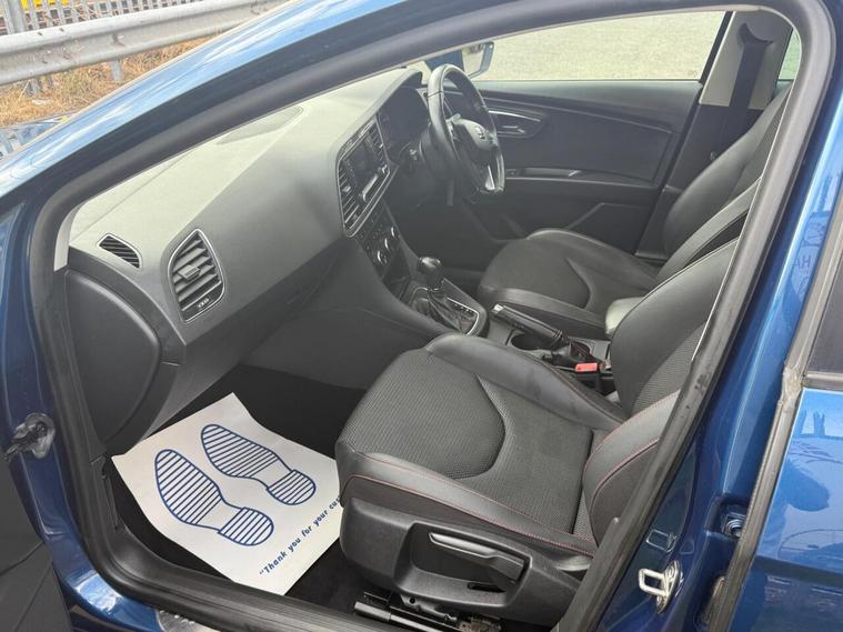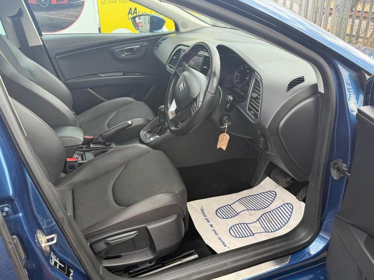 12V Power Supply in Centre Console - Front, 17in Alloy Wheels - Dynamic, 3.5in Monochrome Drivers Display, AUX-In Port, Active Front Head Restraints, Airbags - Curtain, Airbags - Driver, Airbags - Front Passenger, Alarm - Perimeter Tow Away Protection, Ambient Spot Lighting and Footwell Illumination, Anti-Lock Braking System - ABS, Armrest - Front with Storage Compartment, Automatic Post-Collision Braking System, Bluetooth Audio Streaming, Body-Coloured Door Handles, Bumpers - Exclusive FR Front and Rear, Child locks on rear doors, Chrome Interior Decorative Mouldings, Cruise Control, Cupholders - Front x2, Dark Tinted Rear Windows, Daytime Running Lights - Halogen, Deadlocks, Door Mirrors - Electrically Folding with Reverse Activated Kerb-View Function, Door Mirrors - with Integrated LED Indicators, Door Sill Trim - Aluminium, Drivers Knee Airbag, Dual Zone Climate Control, Dust and Pollen Filter, EBA - Electronic Brake Assist, Easy Connect System, Electric Windows - Front and Rear with One-Touch and Anti-Squeeze, Electro-Mechanical Power Steering - Speed-Sensitive, Electronic Differential Lock System - XDS, Electronic Stability Control - ESC, Emergency Tyre Repair Kit, Exhaust Pipe - Twin, Exterior Temperature Indicator, FM-AM Radio, Front Fog Lights with Cornering Function, Front Parking Sensors, Front Passenger Airbag De-Activation, Front Side Airbags, Gearshift Indicator, Gloss Black Pillars, Head Restraints - Height Adjustable Front, Head Restraints - Height Adjustable Rear x3, Headlights - Electric Range Adjustment, Headlights - Twin Halogen, Height Adjustable Passenger Seat, Height and Reach Adjustable Steering Wheel, Height-Adjustable Drivers Seat, Hill Hold Control, ISOFIX Points with Top Tether on Rear Seats, Illuminated Boot, Illuminated glovebox, Inserts - Dash - Chrome Detailing, Instrument Lighting with Brightness Control, Integrated Bluetooth Handsfree System, LED Taillights, Leather gear knob, Leather Handbrake, Leatherette Bolsters, Lights Left On Warning Buzzer, Locking Wheel Bolts, Luggage Compartment - Rings, MP3 Compatible CD Player, Parking Sensors - Front and Rear with Optical Parking System, Passenger Door Mirror with Kerb Function when Reversing, Radiator Grille - Chrome Centre Surround, Reading Light - Front and Rear, Rear Parking Sensors, Rear Wiper, Remote Central Locking, Remote Key - Folding x2 with Remote Window Functionality, SEAT Drive Profile - Sport-Comfort-Eco-Individual, SEAT Logo Tailgate Release, Seatbelt Reminder - Front, Seats - Front Lumbar Adjustment, Seats - Pockets on Front Backrest, Seats - Split Folding Rear, Seats - Sports, Speakers x8, Sports Suspension, Steering Wheel - Flat-Bottomed Perforated Leather with Red Stitching and FR Logo, Steering Wheel - Gearshift Paddles, Steering Wheel Mounted Audio and Phone Controls, Sunvisors with Illuminated Vanity Mirrors, Sunvisors with Vanity Mirrors, TCS - Traction Control System, Touch Screen - Colour 5in, Trip Computer, Tyre pressure monitoring System, USB Port, Voice Control - In Car Entertaintment
