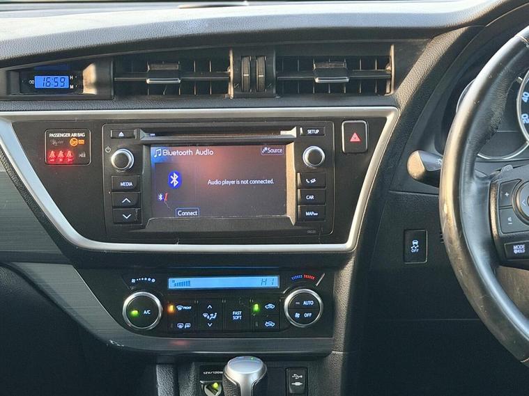 12v Socket, 12V Socket - Luggage Compartment, 16in Alloy Wheels - Dual 5-Spoke, ABS - Anti Lock Braking System, Airbags - Curtain Front and Rear, Airbags - Driver, Airbags - Driver Knee, Airbags - Front Passenger, Airbags - Front Passenger Cut-Off Switch, Airbags - Front Side, Automatic Air Conditioning, Automatic Phonebook Download, BAS - Brake Assist System, Bluetooth Hands Free System, Body Shell with High Tensile Steel Elements, Bumpers - Body Coloured, Centre Console with Lid, Child Protection Locks, Crash-Resistant Body Structure, DAB Digital Radio, Daytime Running Lights - LED, Door Handles - Body Coloured, Door Mirrors - Body Colour, Door Mirrors - Integrated Turning Light Colour-Keyed Electric and Heated, Dual Glovebox, EBD - Electronic Brakeforce Distribution, Electric Power Steering - EPS, Electric Windows - Front and Rear, Follow Me Home Headlights, Front Fog Lights, Front Intermittent Wipers with Adjustable Interval, Gear Shift Indicator - GSI, HAC - Hill Start Assist Control, ISOFIX Child Restraint System, Immobiliser, In Dash Driver and Front Passenger Cupholders, Leather Gear Shift Knob, Locking Wheel Nuts, Multi Information Display, Optitron Display, Overhead Console, Radio and CD Player with MP3 and WMA, Rear 12V Power Outlet, Rear Headrests x3, Rear Seats 60-40 Split Folding, Rear Seats with Tilt Down and 2 Position Reclining Mechanism, Rear Spoiler, Rear View Camera, Rear Window Defogger, Rear Wiper with Interval, Remote Central Locking, Roof Antenna, Seat Belt Warning - Light and Buzzer, Seats - Anti-Whiplash Design, Seats - Drivers Height Adjustment, Seats - Front Seat-Back Pockets, Side Impact Beams, Speakers x6, Steering Wheel - Audio Controls, Steering Wheel - Leather, Storage - Door Pockets, Tilt and Telescopic Adjustable Steering Wheel, Toyota Touch, Traction Control - TRC, Tyre Repair Kit, USB and Aux In, VSC - Vehicle Stability Control