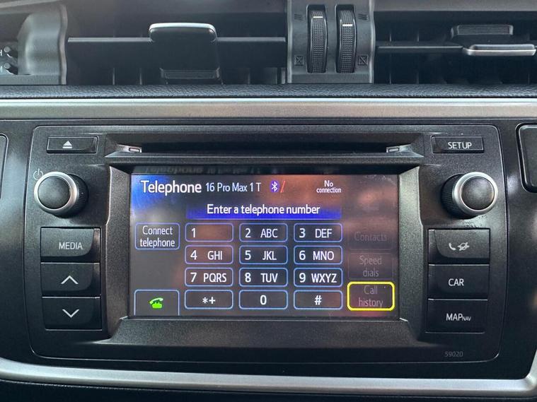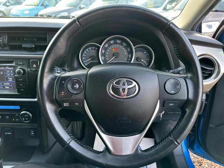 12v Socket, 12V Socket - Luggage Compartment, 16in Alloy Wheels - Dual 5-Spoke, ABS - Anti Lock Braking System, Airbags - Curtain Front and Rear, Airbags - Driver, Airbags - Driver Knee, Airbags - Front Passenger, Airbags - Front Passenger Cut-Off Switch, Airbags - Front Side, Automatic Air Conditioning, Automatic Phonebook Download, BAS - Brake Assist System, Bluetooth Hands Free System, Body Shell with High Tensile Steel Elements, Bumpers - Body Coloured, Centre Console with Lid, Child Protection Locks, Crash-Resistant Body Structure, DAB Digital Radio, Daytime Running Lights - LED, Door Handles - Body Coloured, Door Mirrors - Body Colour, Door Mirrors - Integrated Turning Light Colour-Keyed Electric and Heated, Dual Glovebox, EBD - Electronic Brakeforce Distribution, Electric Power Steering - EPS, Electric Windows - Front and Rear, Follow Me Home Headlights, Front Fog Lights, Front Intermittent Wipers with Adjustable Interval, Gear Shift Indicator - GSI, HAC - Hill Start Assist Control, ISOFIX Child Restraint System, Immobiliser, In Dash Driver and Front Passenger Cupholders, Leather Gear Shift Knob, Locking Wheel Nuts, Multi Information Display, Optitron Display, Overhead Console, Radio and CD Player with MP3 and WMA, Rear 12V Power Outlet, Rear Headrests x3, Rear Seats 60-40 Split Folding, Rear Seats with Tilt Down and 2 Position Reclining Mechanism, Rear Spoiler, Rear View Camera, Rear Window Defogger, Rear Wiper with Interval, Remote Central Locking, Roof Antenna, Seat Belt Warning - Light and Buzzer, Seats - Anti-Whiplash Design, Seats - Drivers Height Adjustment, Seats - Front Seat-Back Pockets, Side Impact Beams, Speakers x6, Steering Wheel - Audio Controls, Steering Wheel - Leather, Storage - Door Pockets, Tilt and Telescopic Adjustable Steering Wheel, Toyota Touch, Traction Control - TRC, Tyre Repair Kit, USB and Aux In, VSC - Vehicle Stability Control