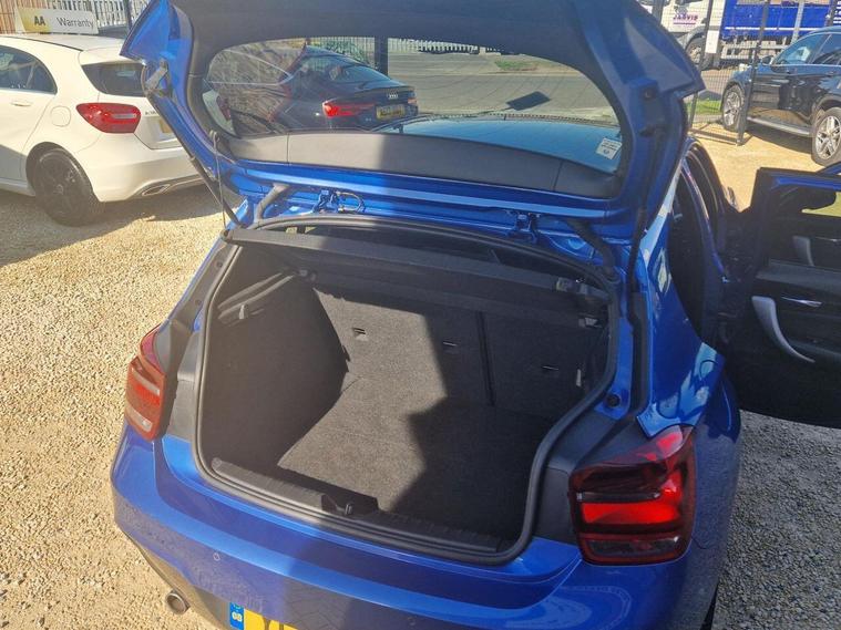12V Power Socket - Centre Console, 12V Power Socket - Passenger Footwell, 18in Alloy Wheels - Light M Star Spoke - 386M, 6.5in Colour Display Screen, ABS - Anti Lock Braking System, ADB Sport - Active Differential Brake, ASC - Automatic Stability Control, Air Conditioning - Automatic - Dual Zone, Airbags - Curtain Head Protection system, Airbags - Driver, Airbags - Front Side, Airbags - Passenger, Airbags - Passenger Deactivation, Alarm System Thatcham 1 with Remote Control, Ambient Lighting - Switchable, Armrest - Front and Rear Integrated into Door Trim, Armrest - Front with Sliding Adjustment, Auxiliary Input, BMW Professional Radio - Single CD and MP3, Battery Safety Cut Off, Bluetooth Hands Free with USB Audio Interface, Brake Assist, Brake Drying, Brake Pad Wear Indicator, Bumpers - Body Colour, CBC - Cornering Brake Control, Central Locking - Remote, Check Control Warning System, Child Proof Locking System - Rear Doors, Child Seat ISOFIX Attachment - Rear, Crash Sensor - Activating Central Locking-Hazard Warning Lights-Fuel Cut Off, Cup Holders x2, DAB Digital Radio, DBC - Dynamic Brake Control, DSC - Dynamic Stability Control Plus, DTC - Dynamic Traction Control, Daytime Running Lights, Door Handles - Body Colour, Door Mirrors - Body Coloured, Door Mirrors - Electric and Heated, Door Sill Finishers - M Designation, Drive Performance Control with ECO PRO - Comfort and Sport Modes, Dynamic Brake Lights, Electric Windows - Front and Rear with Open-Close Fingertip Control, Engine Immobiliser, Exhaust Tailpipe - Chrome, Exterior Trim - High-Gloss Shadowline, First Aid Kit, Floor Mats - Velour, Follow Me Home Headlight Function, Front Fog Lights, Gear Knob - Leather, Grab Handles - Integrated in Roof Lining x4, Halogen Headlights, Handbrake - Leather, Head Restraints - Rear and Folding, Headlights - Automatic Activation, Headlights - Beam Throw Control, Headlining - Anthracite, Heat Protection Glazing with Green Tint, Heated Windscreen Washer Jets, High Level Third Brake Light, Hill Start Assist, Incorrect Fuelling Protection System, Interior Lighting - Front and Rear Centre, Interior Trim - Aluminium Hexagon, Kidney Grille - Chrome with Black Vertical Slats, Kidney Grille - Extra Wide High Gloss Black Vertical Slats, Lights-on Audio Warning, Locking Wheel Bolts, Luggage Compartment - Lashing Eyes, M Aerodynamic Bodystyling, M Sport Package, Multifunction Controls for Steering Wheel, OBC - On-Board Computer, Personal Profile, Power Steering - Electric, Rain Sensor with Automatic Headlight Activation, Roof Mouldings - Body Colour, Run Flat Tyres, Seats - Driver Manual Adjustment, Seats - Passenger Manual Adjustment, Seats - Split Rear 60-40, Shark Fin Aerial, Side Impact Protection, Smokers Package Deletion, Speakers x6, Sport Seats - Front, Start-Stop Button with Comfort Go Keyless Engine Start, Steering Column with Manual Reach and Rake Adjustment, Steering Wheel - Leather - M Sport, Storage Compartment in Rear Centre Console, Sun Visors with Illuminated Vanity Mirrors and Ticket Pocket, Suspension - M Sport, TPMS - Tyre Pressure Monitoring System, Trim Finisher - Estoril Blue - Matt, Warning Triangle, Welcome Lighting