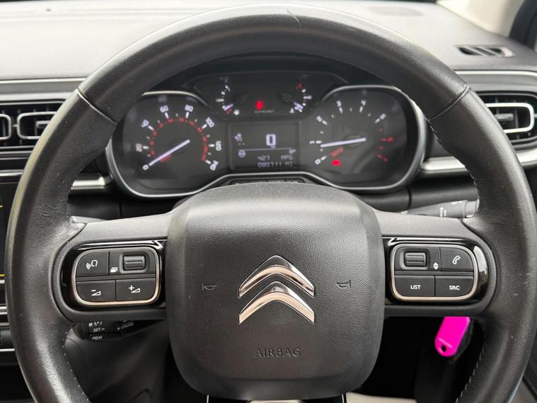 12 Volt Socket in Cabin, 16in Alloy Wheels - Matrix, 2 Rear ISOFIX Mounting Points - Outside Seats, 7 inch Touchscreen, ABS with Electronic Brakeforce Distribution and Emergency Braking Assistance, Airbump - Black, Alarm, Auto-Dimming Electrochrome Rear View Mirror, Automatic Air Conditioning, Automatic Lights and Windscreen Wipers, Bluetooth Handsfree and Media Streaming with USB Socket and Jack, Body Colour Painted Door Handles, Boot light, Citroen Connect DAB Radio with 6 Speakers, Coffee Break Alert, ConnectedCAM Citroen, Cruise Control with Speed Limiter, Cupholders, Cupholders, Dark Tinted Rear Windows, Driver - Front Passenger - Front Lateral and Curtain Airbags, Drivers - Passengers and Rear Seats Unfastened Seat Belt Warning, Drivers and Passengers Sunvisor with Courtesy Mirror, Electric Child Locks, Electric Child Locks, Electrically Adjustable Door Mirrors, Electronic Stability Control - ESC, Exterior Temperature Display, Five Three-Point Inertia Reel Seat Belts, Front Courtesy Reading Lights, Front Electric Windows - One Touch with Anti-Pinch, Front Fog Lights, Front Seat Belt Pretensioners, Front Seat Belt Pretensioners, GEI - Gear Efficiency Indicator, Height Adjustable Drivers Seat, Height Adjustable Halogen Headlights, Height and Reach Adjustable Steering Wheel, Hill Start Assist, Immobiliser, LED Daytime Running Lights, Lane Departure Warning System, Lashing Eyes in the Boot, Leather gear knob, Leather Steering Wheel with Satin Chrome and Bright Black Inserts, Locking Wheel Nuts, Luggage Style Interior Door Handles, Mirror Screen with MirrorLink and Apple CarPlay, Multi-Function On-Board Trip Computer, Rear Electric Windows - One Touch with Anti-Pinch, Rear Parking Sensors, Rear Split - Folding Seats, Remote Central Locking with Deadlocks, Rev Counter, Reversing Camera, Space Saver Spare Wheel, Speed Limit Recognition and Speed Warning, Steering Wheel Mounted Controls, Tyre Pressure Monitor, Variable-Assistance Power Steering, Wheel Arch Extensions, Passenger Seat ISOFIX Mountings and Rear ISOFIX Mounting Points