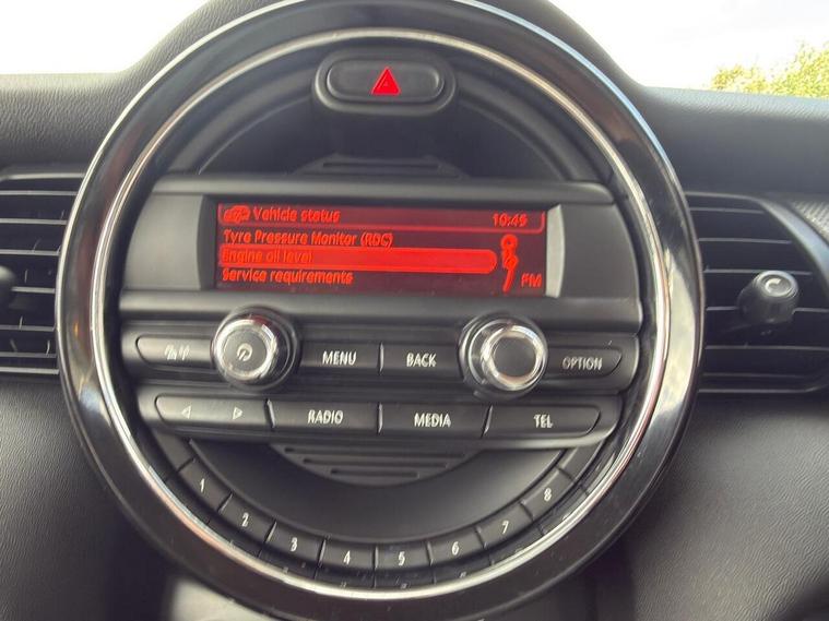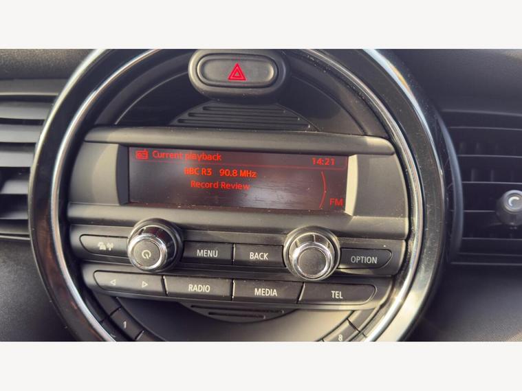 12Volt Socket in Front Centre Console, 15in Alloy Wheels - Heli in Silver, 3 point seatbelts on all seats, 3rd Brake Light - LED Along Top of Rear Window, Air Conditioning - Manual, Airbags for Driver and Front Passenger - 6 Airbags as Standard, Alarm and Immobiliser - Thatcham CAT 1, Anti-Lock Braking System - ABS, Automatic Door Window Lowering by Approx 6mm When Door Opens, Bluetooth Hands Free Function with USB Audio, Body Coloured Fuel Filler Cap in Rear Right Side Panel - Linked to Central Locking, Boot Release via Remote Control, Brake Pad Wear Indicator, Chrome Bezels around Rear Lights and Headlights, Colour Line - Carbon Black, Condition Based Service, Crash Sensor, Cupholders - Two in Front and One in the Rear Centre Console, DAB Tuner, DTC - Dynamic Traction Control with EDLC - Electronic Differential Lock Control, Daytime Driving Lights, Decorative Rings Surrounding Dashboard Instruments in Chrome Plated, Door Handles - Chrome Plated, Door Sill Finishers - Metal Look and Model Dependent Lettering, Dynamic Stability Control - DSC, Easy Entry Access to the Rear Seats and Memory Function for Driver's Seat Base, Exhaust Tailpipe - Visible - Single - Round - Left Hand Side with Chrome Finisher, Exterior Mirrors - Aspheric on Drivers Side - Electrically Adjustable, External Visible VIN, Foldable Rear Backrest 60-40, Follow Me Home Function, Front Fog Lights, Front Passenger ISOFIX and Airbag De-Activation Switch, Front Side Indicators - Orange, Fuel Pump Automatic Cut-Off in Crash Situation, Gearshift Lever Knob - Plastic, Gearshift-Selector Lever and Handbrake Lever Gaiters in Sensatec Artificial Leather, Halogen Lights for Low Beam and High Beam Headlights, Handbrake Lever Grip - Plastic, Headlight - Beam-Throw Control Electrical with Manual Adjustment, Headliner - Satellite Grey, Headrests For All Seats - Manually Adjustable and Two Rear Folding Headrests, Heated Mirrors and Windscreen Washer Jets, Heated Rear Window with Automatic Deactivation, Heated Window Heater, Heater with Mechanical Control and Recirculating-Air Button, Intelligent Emergency Calling - E-Call, Interior Door Handles - Chrome Plated, Interior Lights - Integrated into Centre Front Headliner, Interior Mirror - Mechanical Anti-Dazzle, Interior Surface - Haze Grey, Interior Trim - Hazy Grey, Lashing Eyes in Luggage Compartment, Locking System with Central Locking, Luggage Compartment - Light, MINI Central Display, MINI Mobility System, MINI TeleServices, MINIMALISM Fuel Saving Technology, Mechanical Seat Adjustment - Six Way Drivers Seat, Microfilter, Mirror Caps in Body Colour, Non Smoker Package, Oddments Trays at Rear - Right and Left, On-Board Computer, Personal Profile, Power Steering with Servotronic, Radiator Grille - Chrome Border and Slats in High-Gloss Black, Radio with Four-Line Display, Rear Fog Light, Rear window wiper, Reversing Light, Revolution Counter, Roof Spoiler Painted in Roof Colour, Roof in Body Colour, Security Locking Wheel Bolts, Side Scuttles Black with Integrated Direction Indicator Orange, Sills - Bumper Edges - Wheel Arch Cover in Black, Speakers - Two Mid Range in Front Doors and Two Woofers under Front Seats, Speedometer on Steering Column, Stainless Steel Embellisher at Bottom Edge of all Windows, Standard Seat for Driver and Front Passenger, Start-Stop Button with Keyless Start, Steering Wheel - 2-Spoke Plastic, Steering Wheel Column Adjustment Mechanically in Height and Length, Storage Options, Sun Visors with Integrated Vanity Mirrors on Drivers and Passengers Sides, TPWS - Tyre Pressure Warning System, Tailgate Handle - High Gloss Black, Tool Kit in Luggage Compartment, Twin horns, Window Lifts - Electrical for Drivers and Front Passengers Sides
